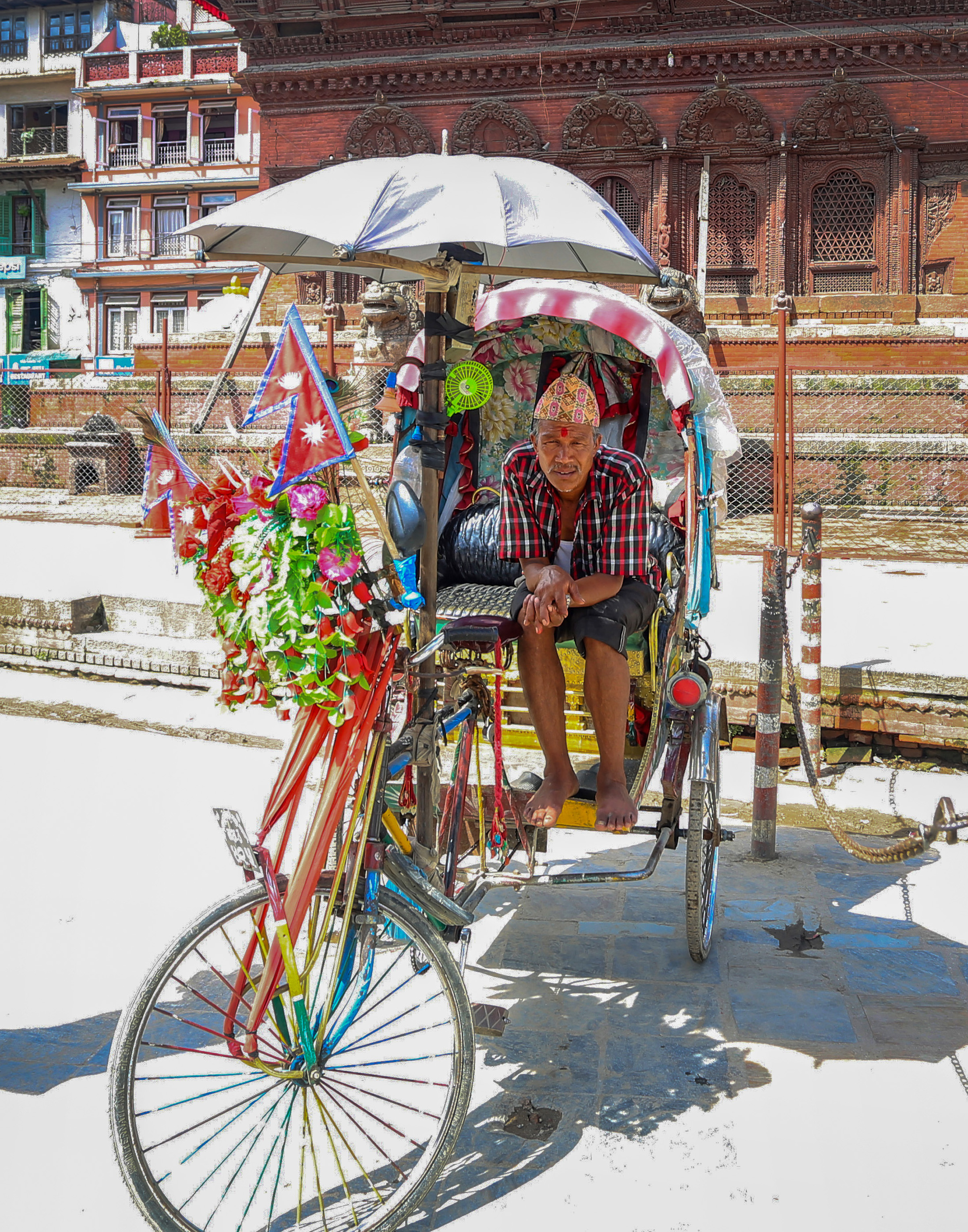 A rickshaw driver waits for passengers at Basantapur Durbar Square. Elite Joshi /TKP