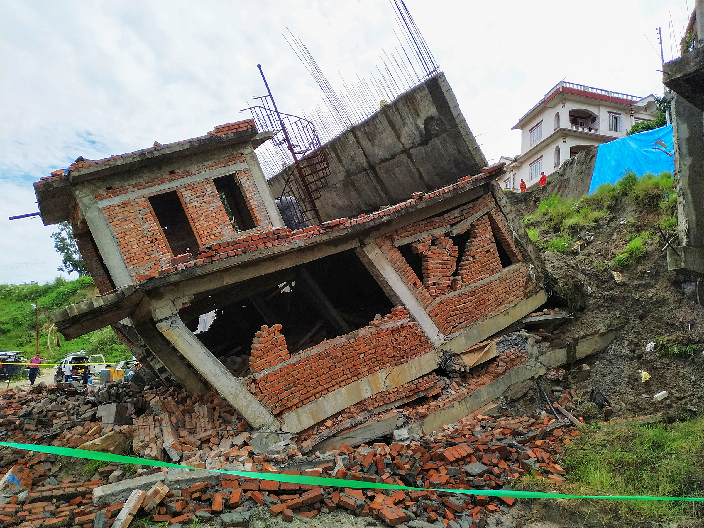 A newly constructed house in Green Hill City Housing in Mulapni, Kathmandu, collapsed on Tuesday night. The housing officials had tried to bar photographers from taking pictures of the building in an effort to stifle the news. Kabin Adhikari/TKP