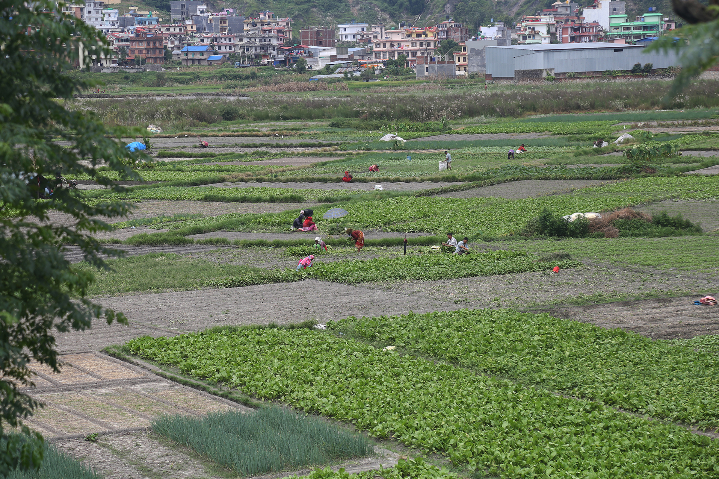 Farmers work in their vegetable farms near Bode in Bhaktapur. Kabin Adhikari /TKP