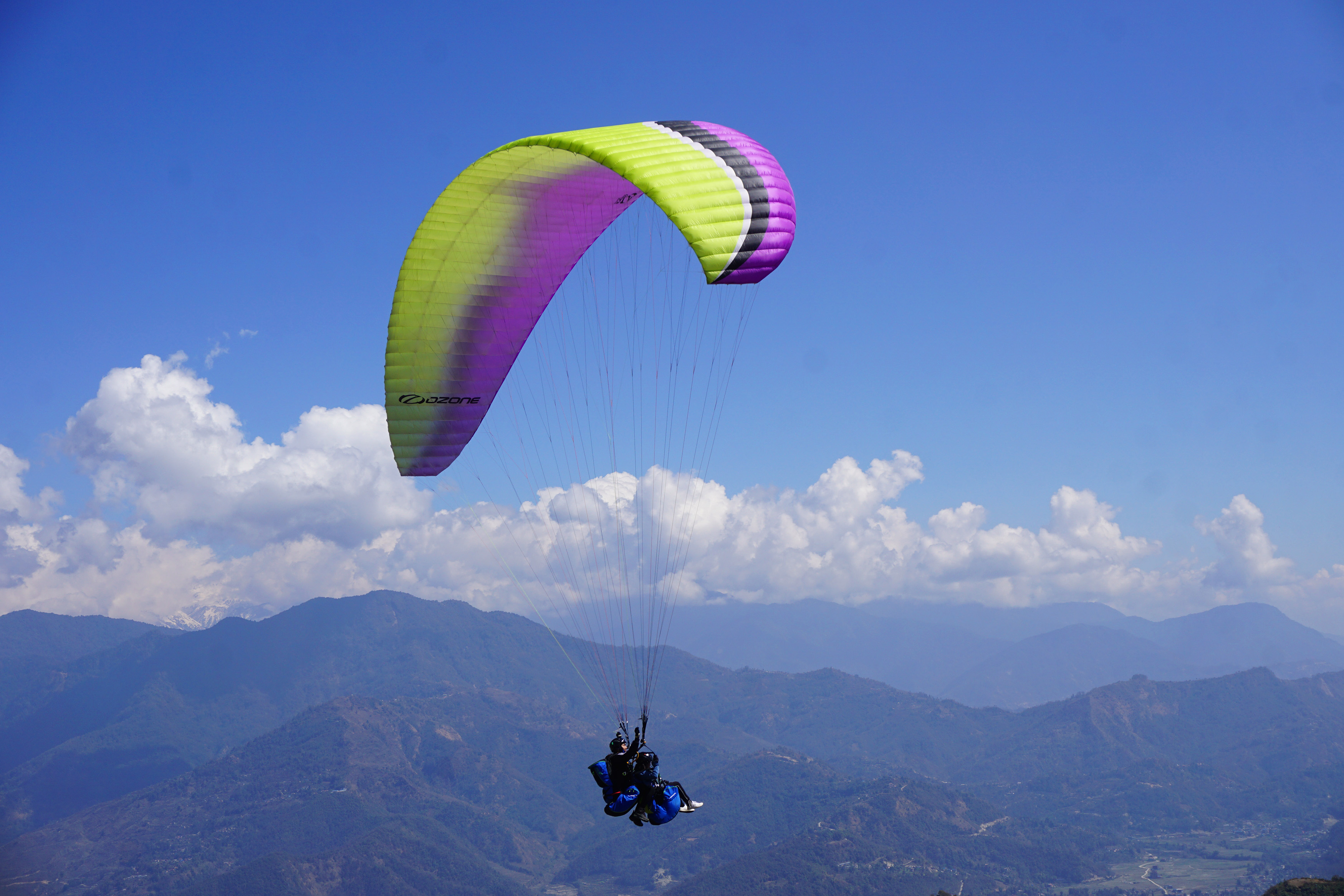 A tourist paraglides at Sarangkot in Pokhara. Over 50 companies provide paragliding services with around 150 flights per day. Deepak Pariyar/TKP