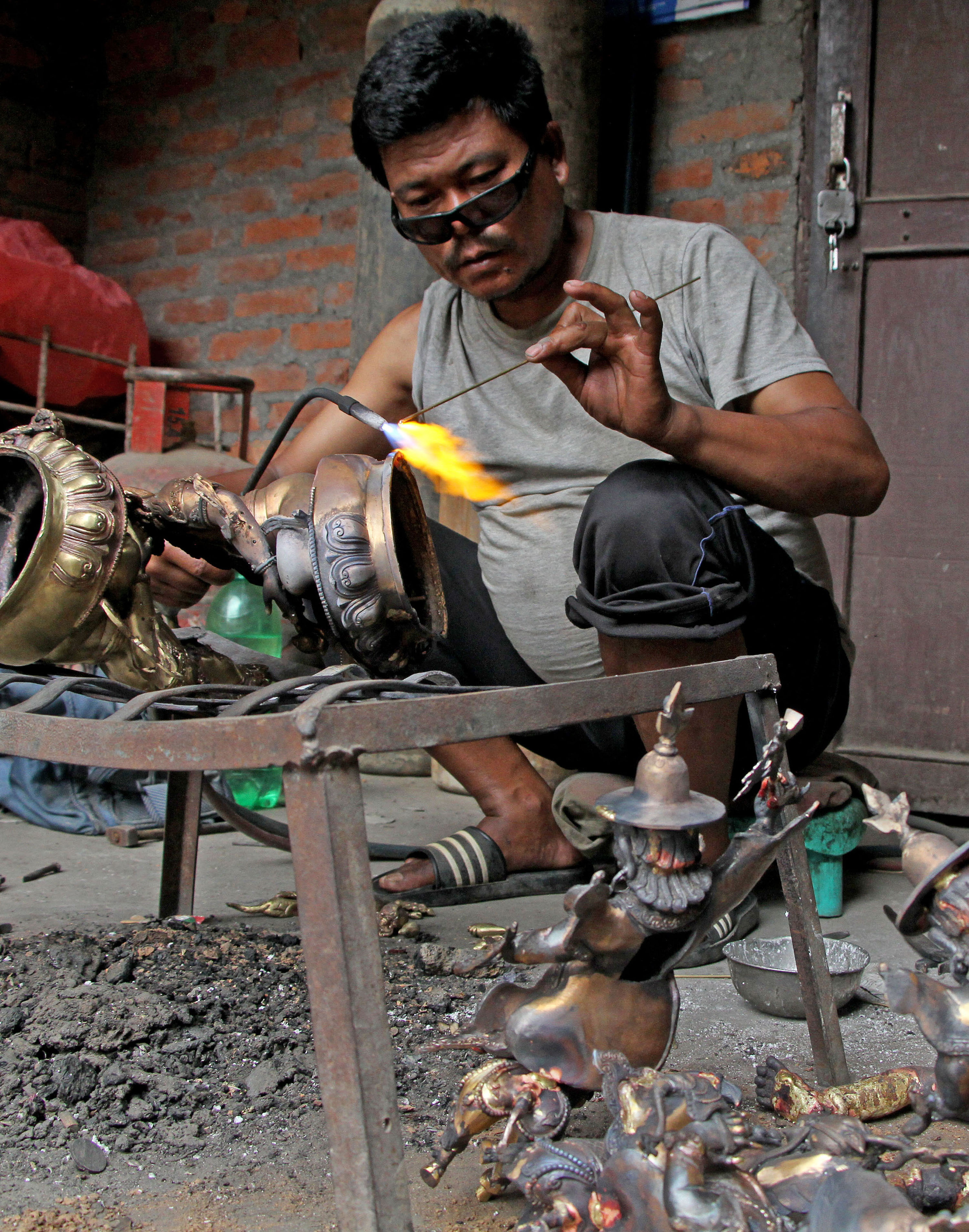 Manoj Lama, a brazier, wields a copper idol at his workshop in Sundhara, Patan. Beeju Maharjan/TKP