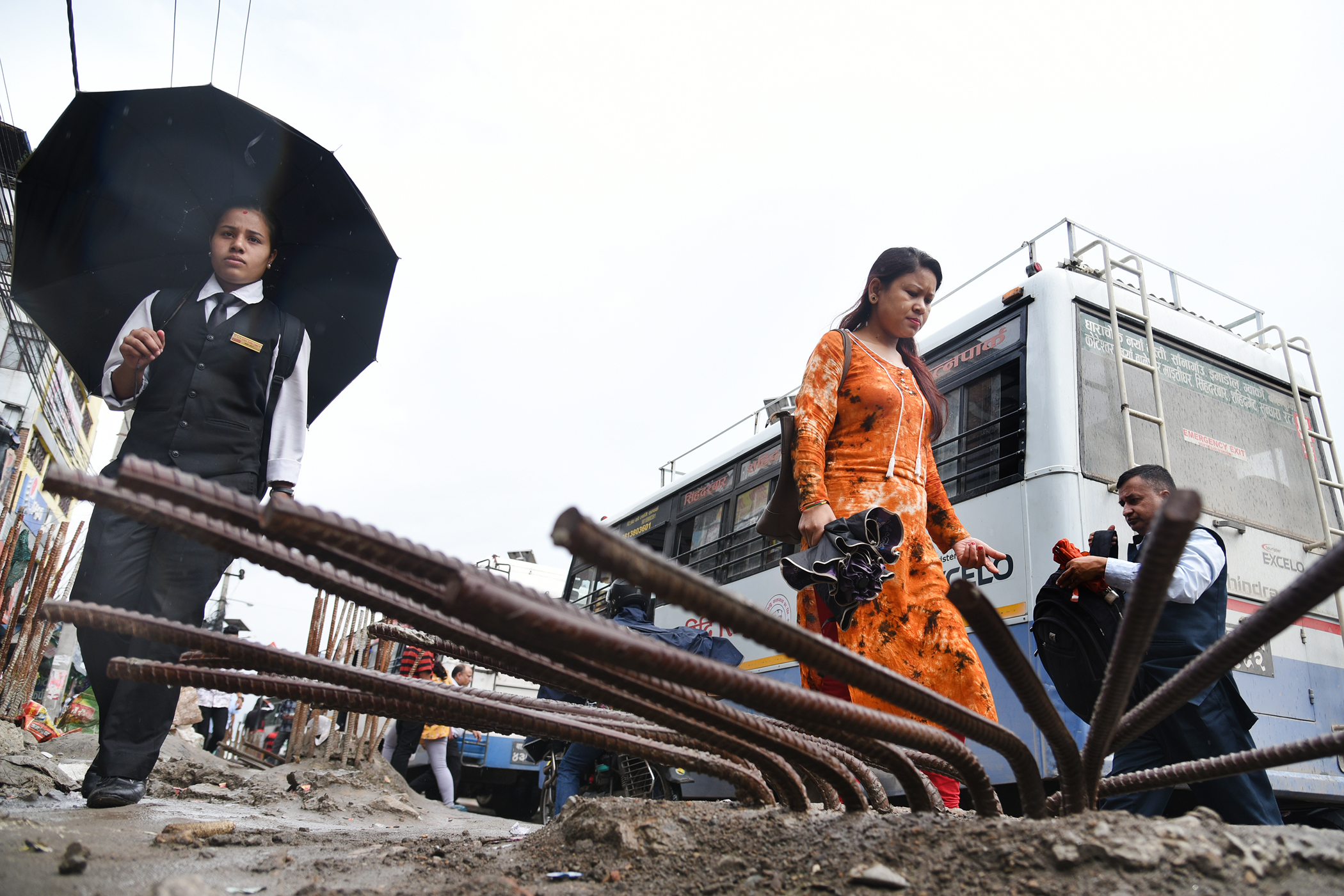 Steel rods jut out on a roadside, posing injury risk for pedestrians in New Baneshwor, Kathmandu. Angad Dhakal/TKP