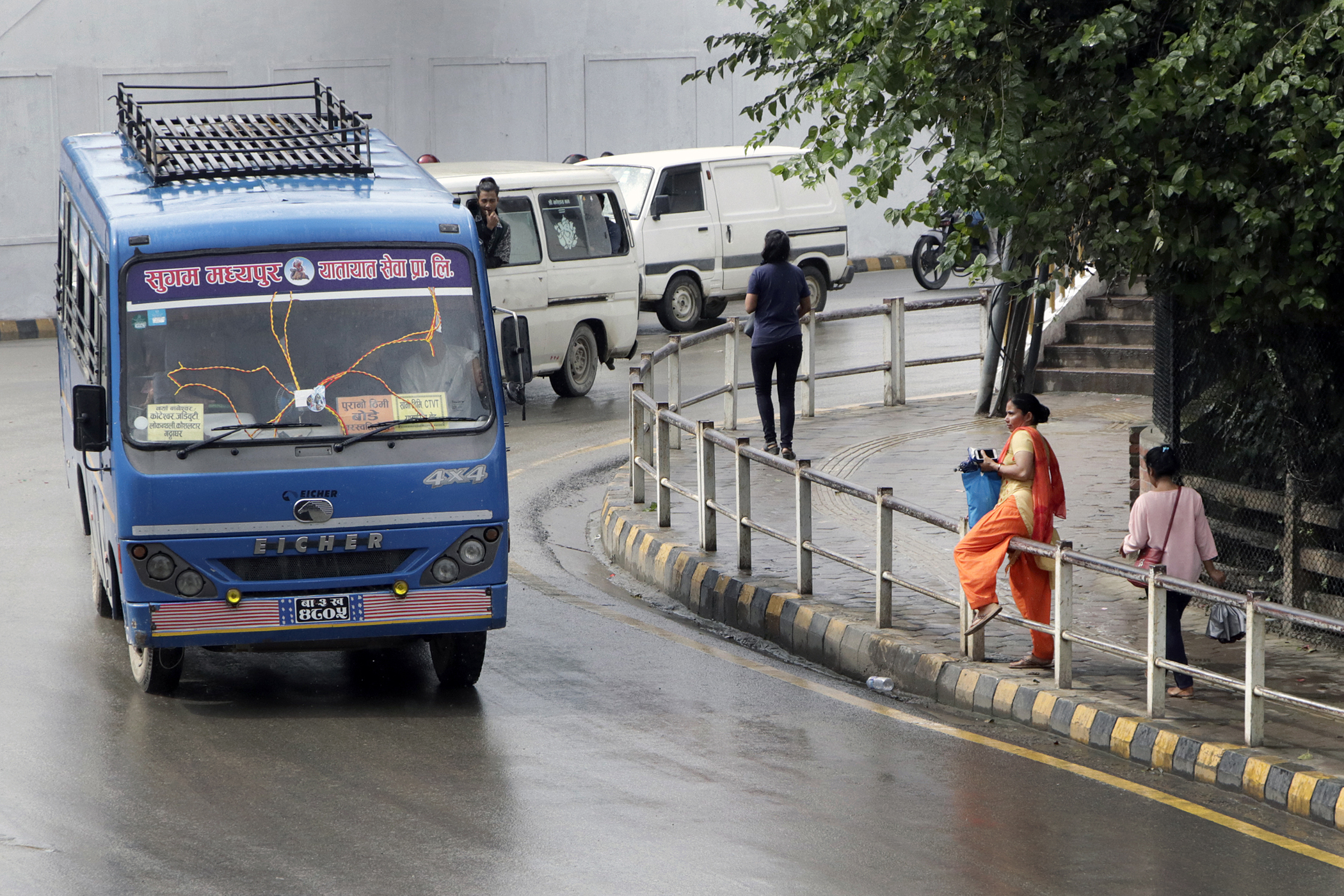 A pedestrian steps over a footpath fence in order to cut across a busy road section, despite an overhead bridge and a zebra crossing located nearby at Bhadrakali in Kathmandu on Monday. Anish Regmi/TKP