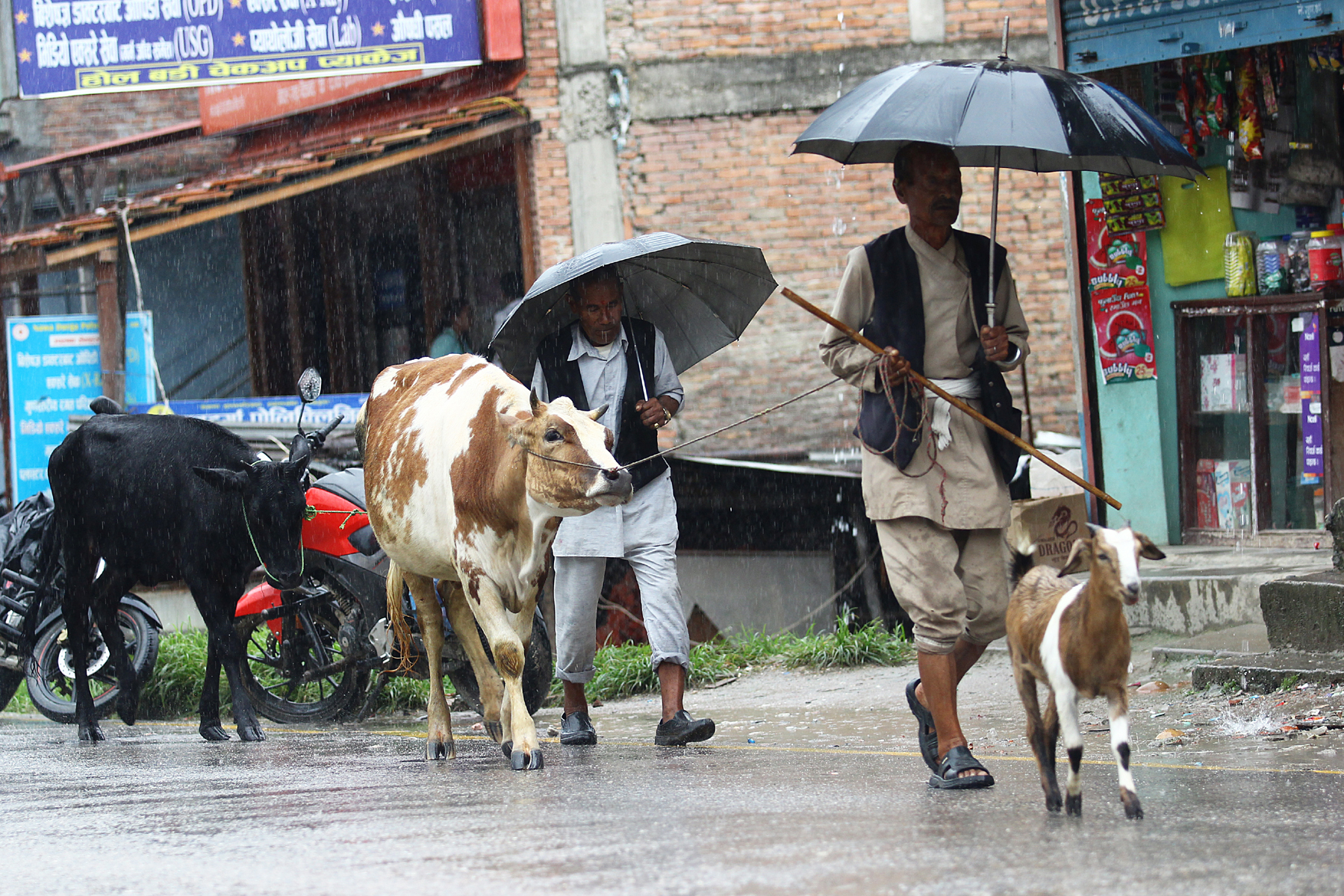Farmers take their cattle home as rain started pelting in Kathmandu on Tuesday. Kabin Adhikari/TKP