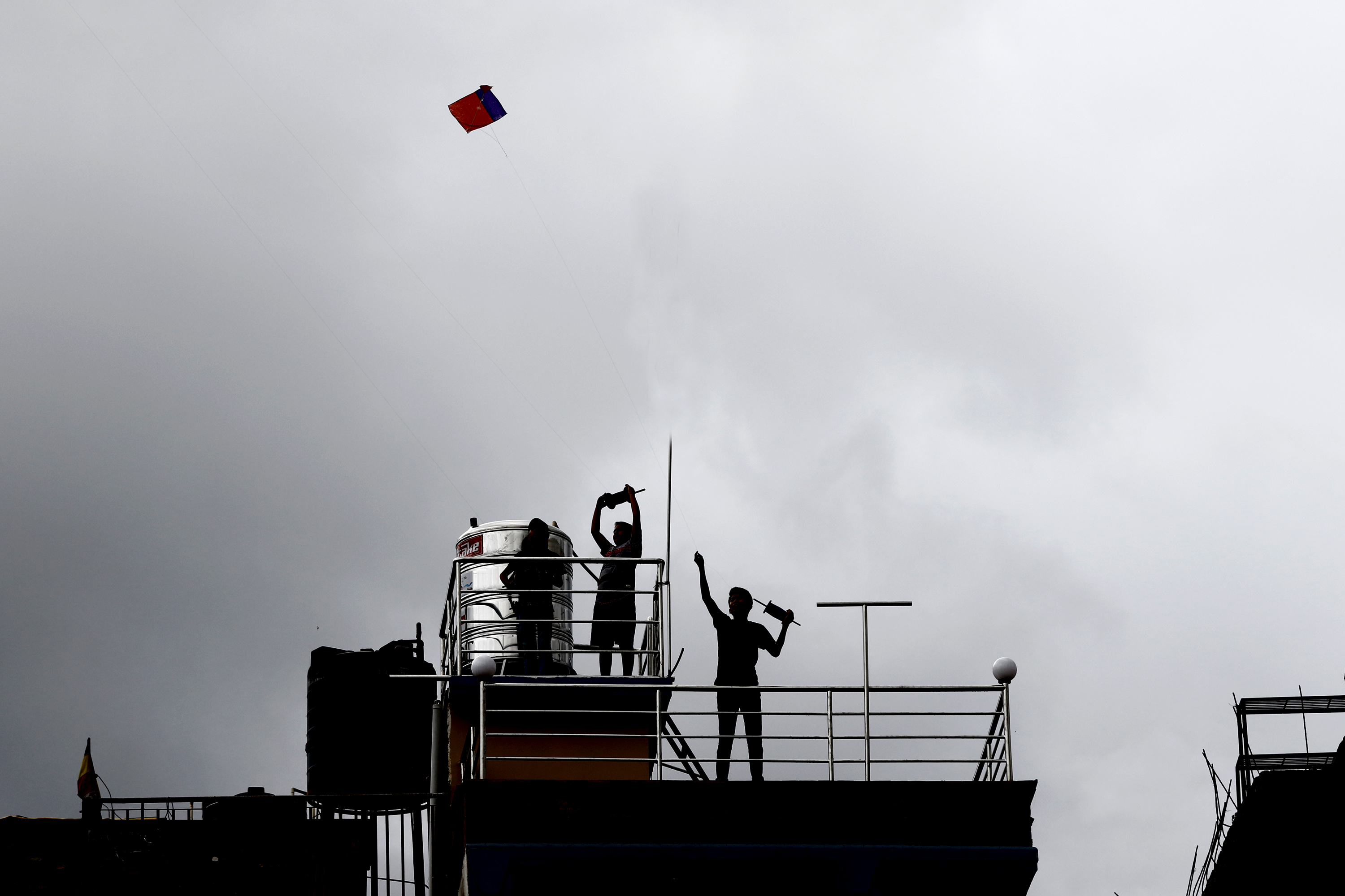 Children fly kites from a rooftop in Patan, Latipur on Sunday. Keshav Thapa /TKP