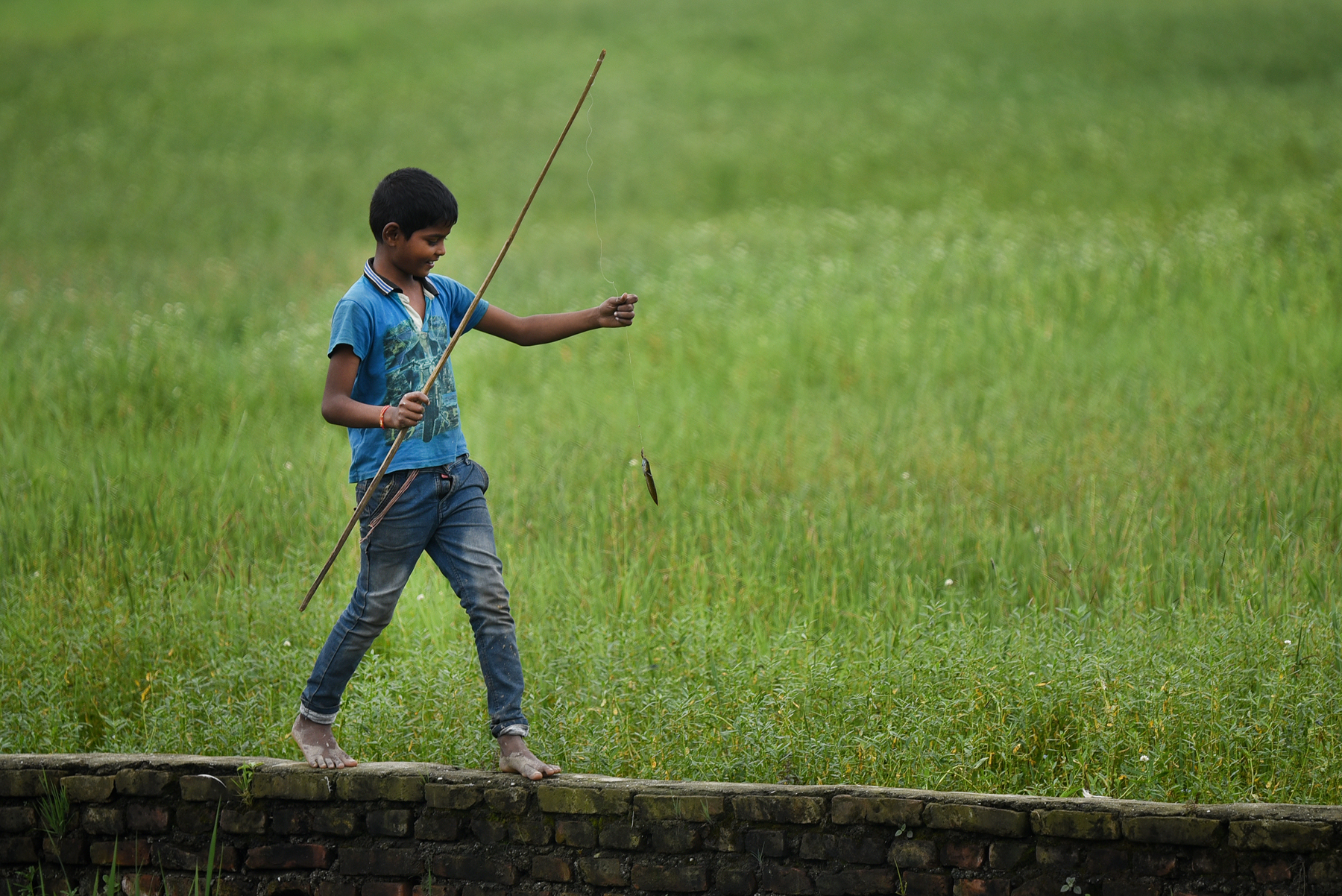A boy walks through fields happy with his catch for the day in Bhaktapur, on Thursday. Angad Dhakal/TKP