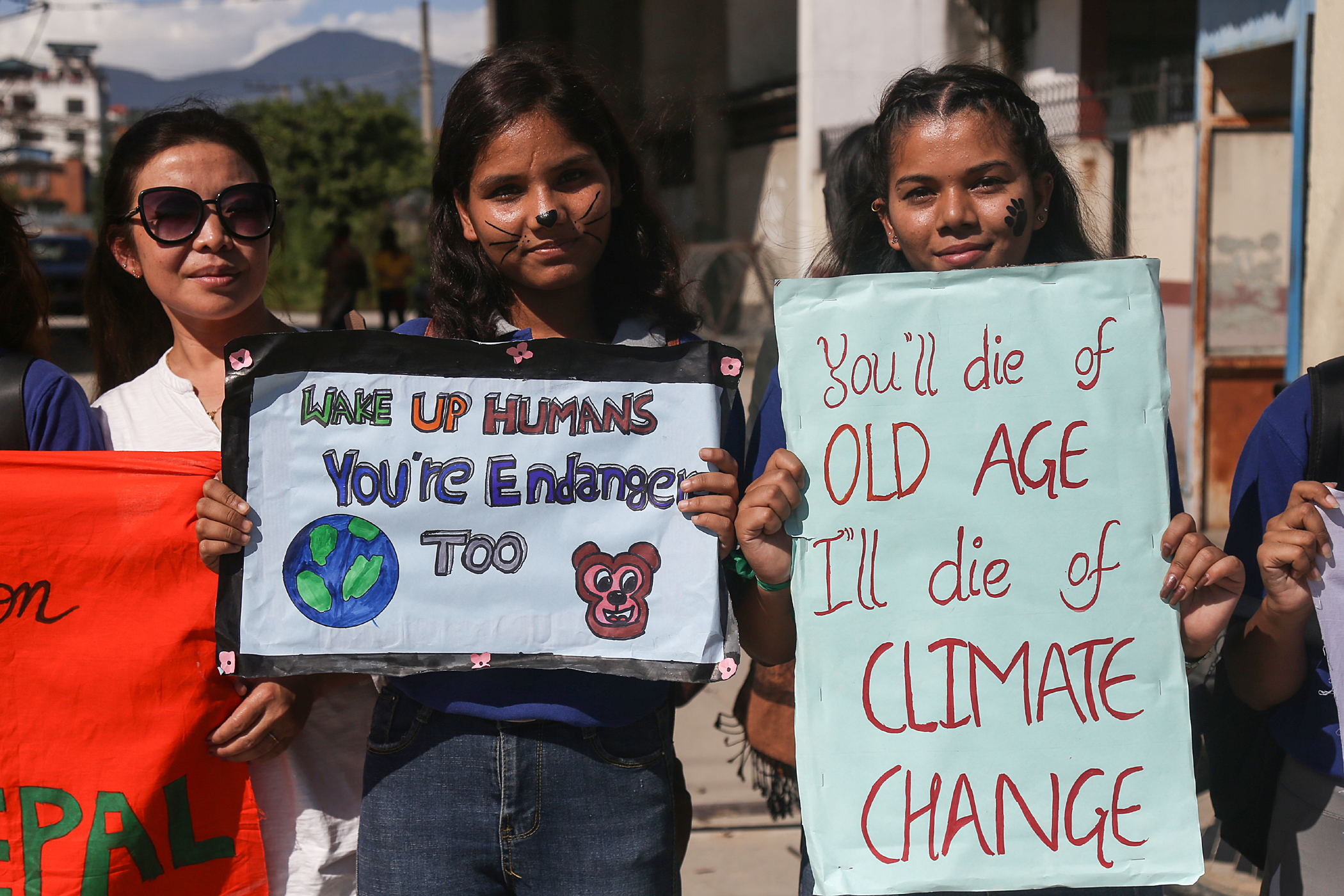 Students hold placards as they take part in the Global Climate Strike in Baneshwor, Kathmandu, on Friday. Kabin Adhikari/TKP