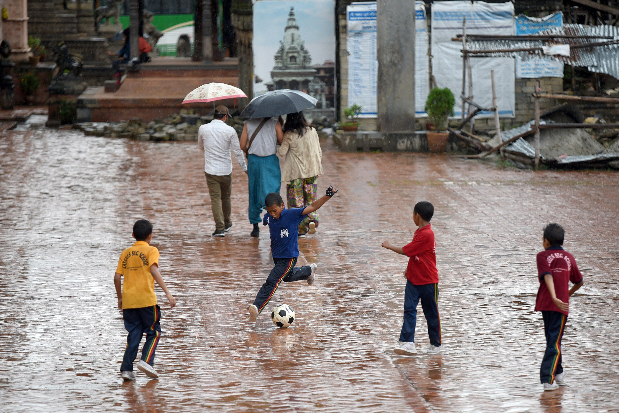 School children play football on the premises of Bhaktapur Durbar Square. Angad Dhakal/TKP