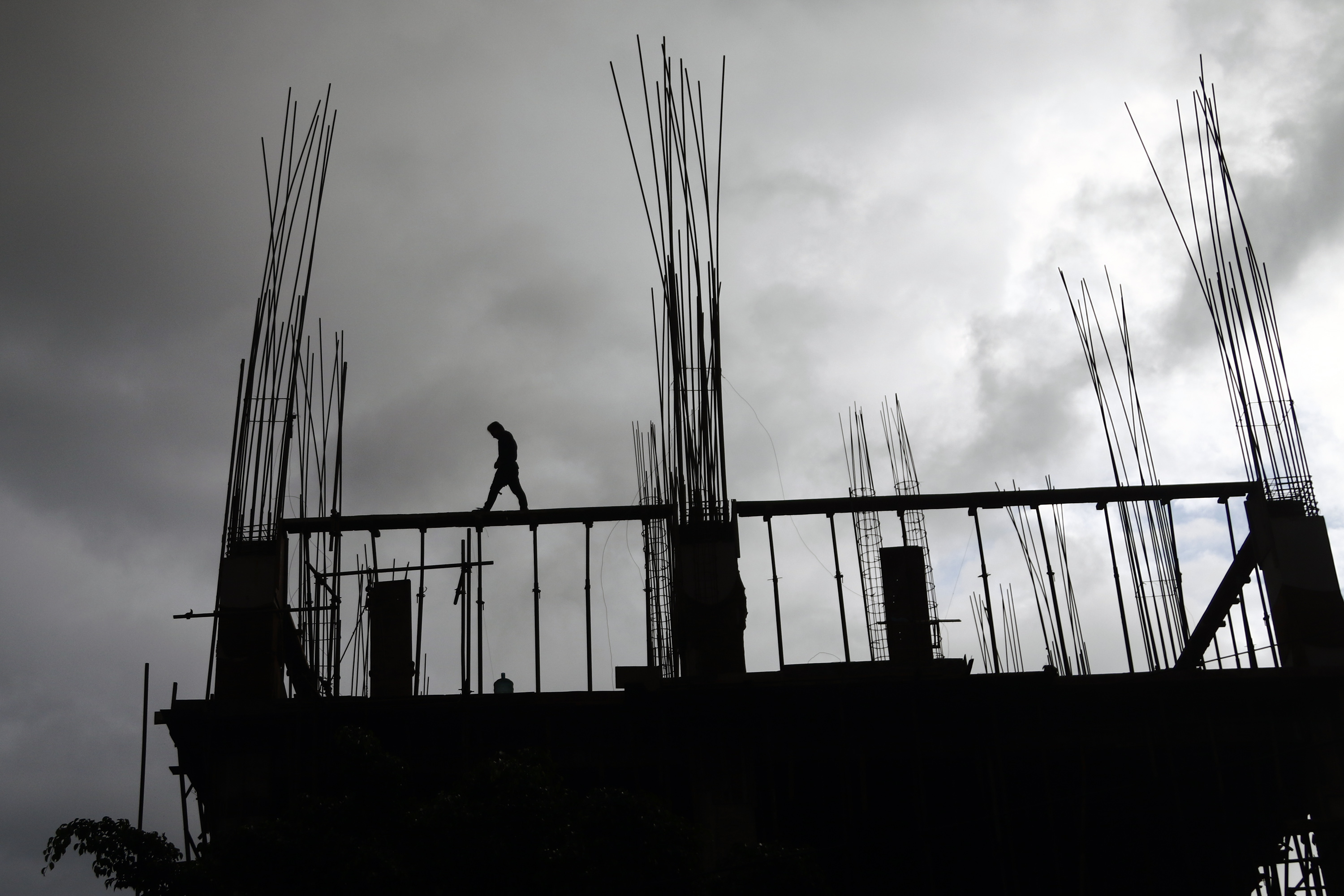 A construction worker silhouetted against the sky as he works in a building without any safety gear at Battisputali in the Capital on Thursday. Keshav Thapa/TKP