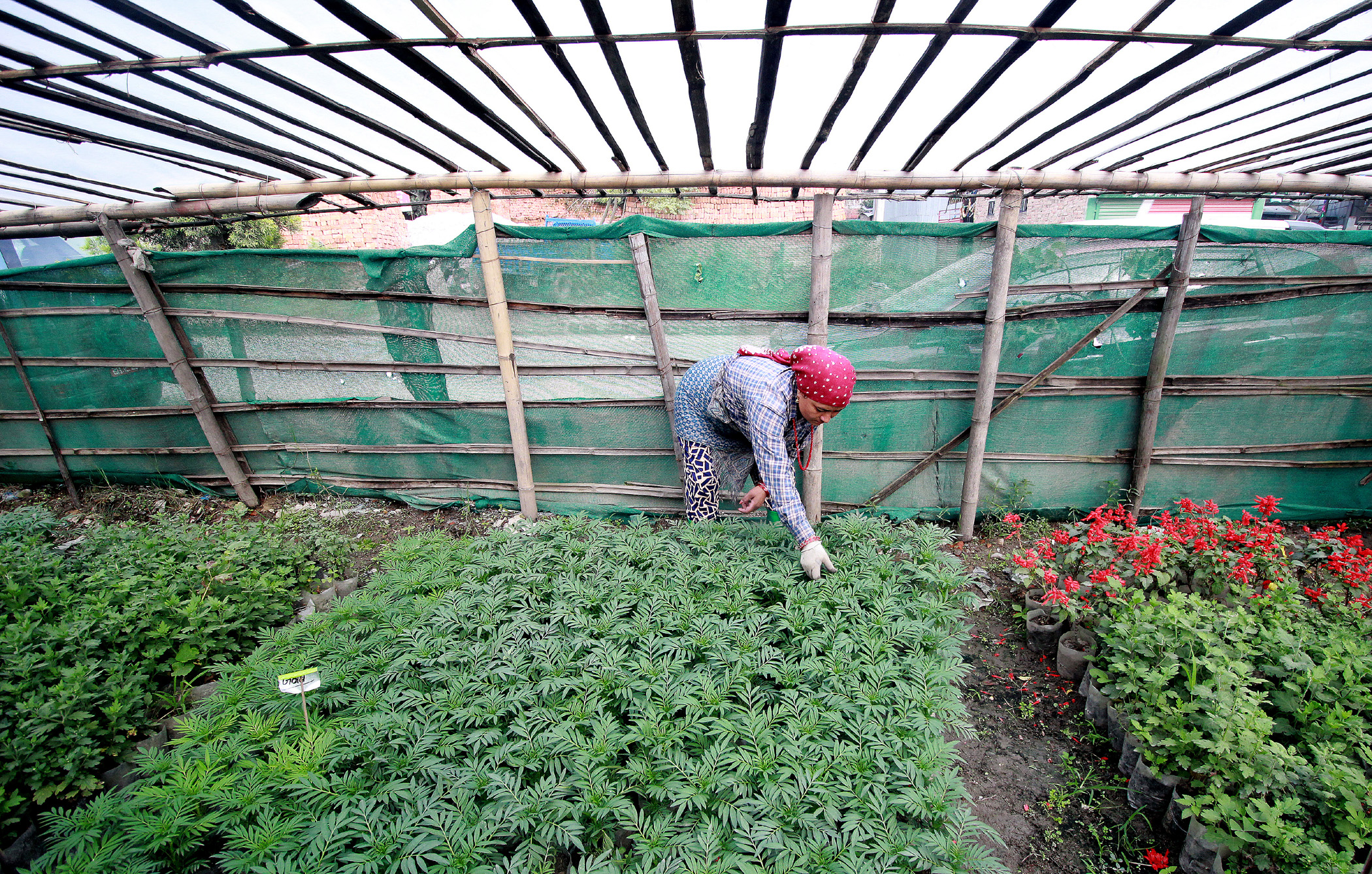 A woman tends to marigold saplings at a nursery in Sanepa, Lalitpur. Sales of marigold flowers soar during the Tihar festive season which begins on October 27. Beeju Maharjan/TKP