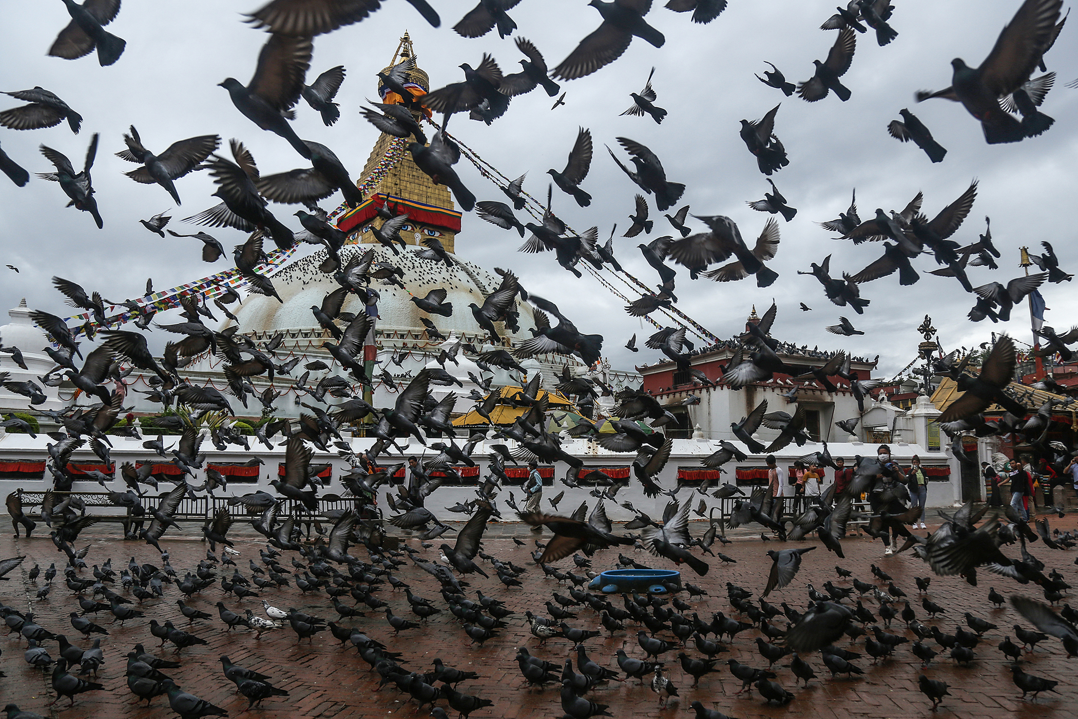 Pigeons flutter at the Boudhanath Stupa, one of the UNESCO world heritage sites in Kathmandu. Kabin Adhikari/TKP