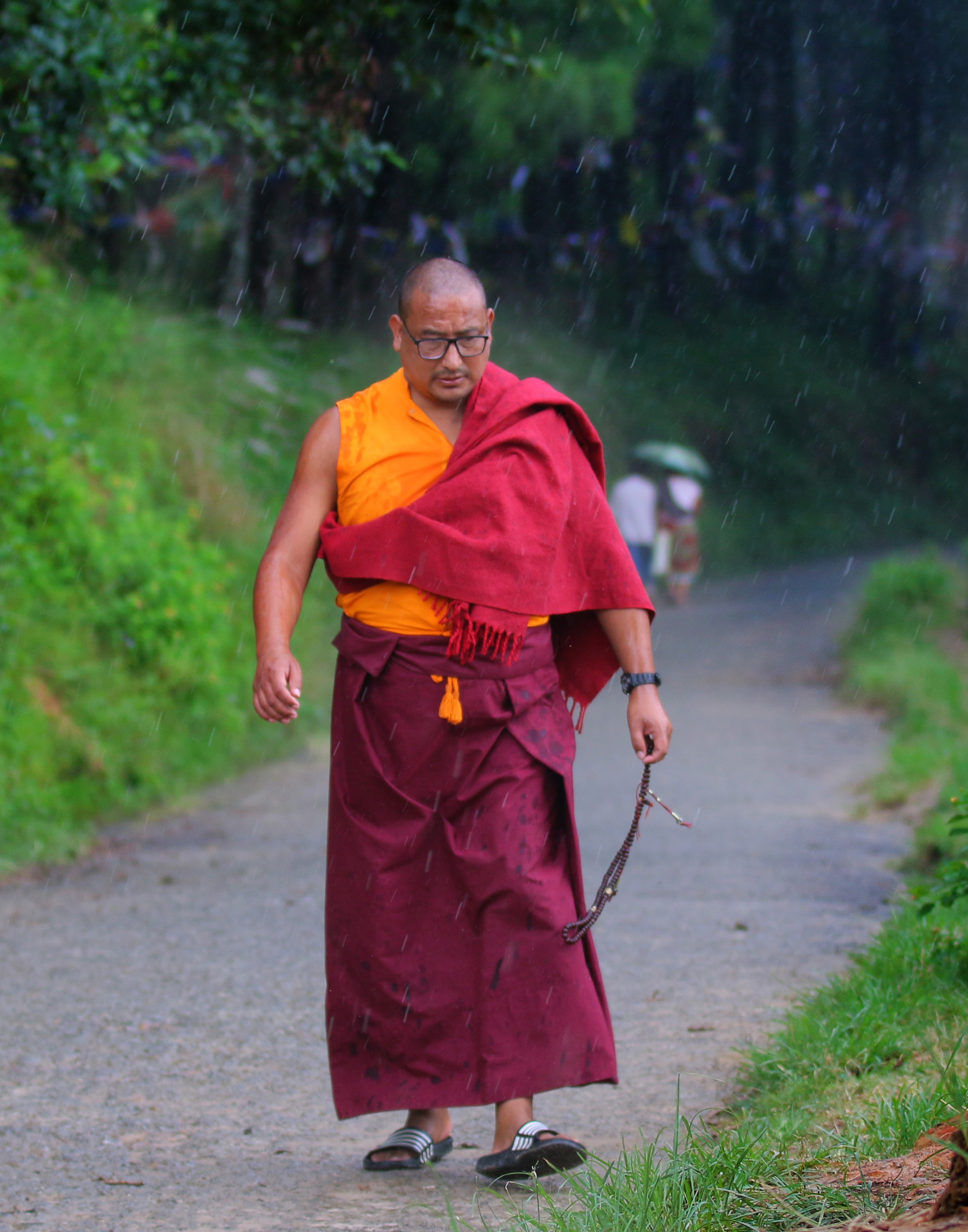 A Buddhist monk walks in the rain at Gokarna, Kathmandu on Wednesday. Elite Joshi /TKP