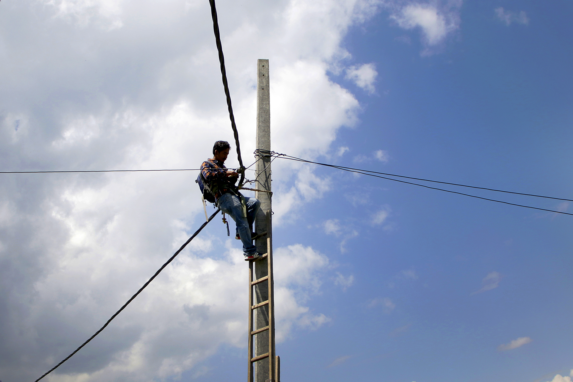 A technician repairs electric cables in Lalitpur on Saturday. Anish Regmi/TKP