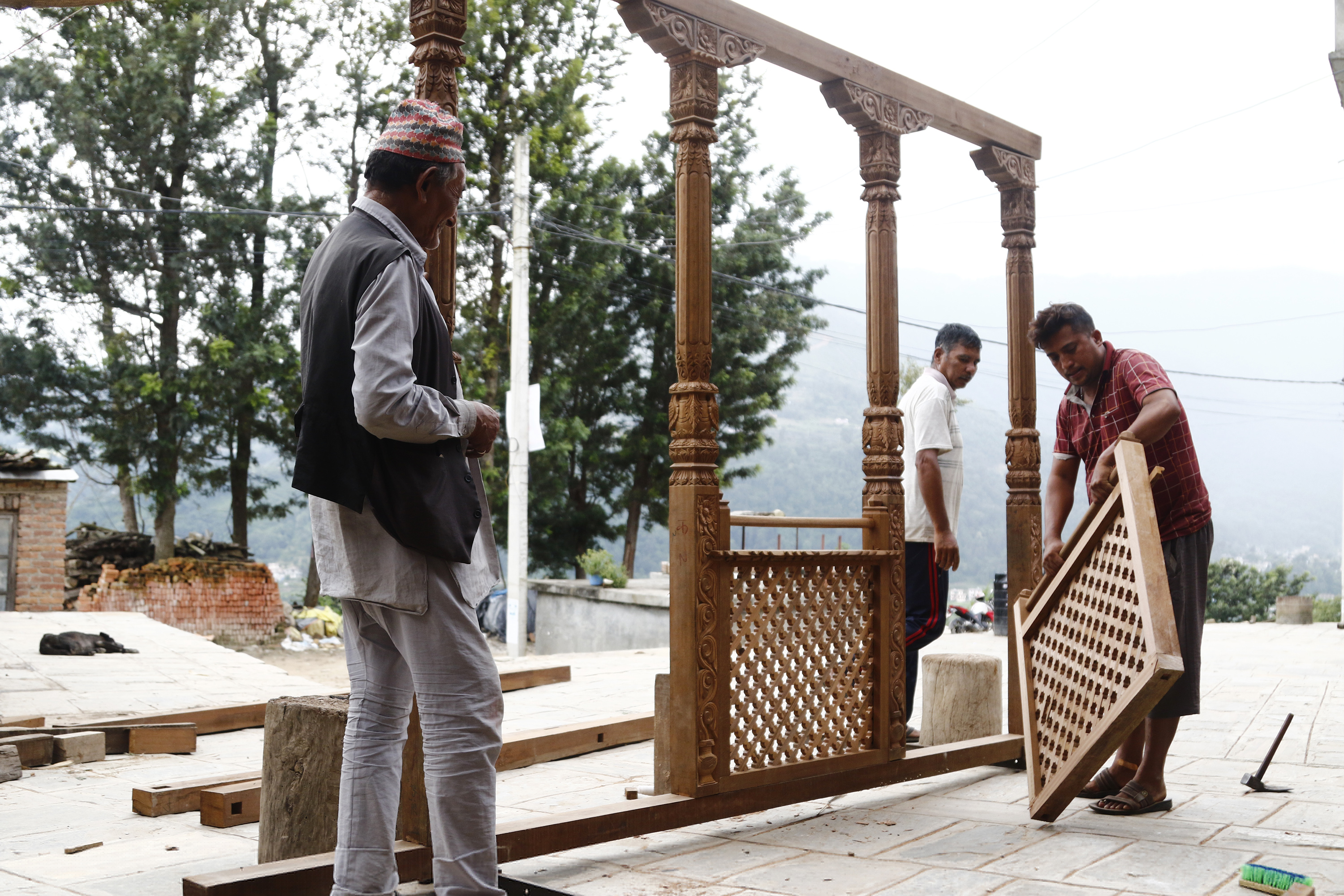 Wood carvers work on traditional window frames in Bungmati, Lalitpur. The use of such traditional frames is fast disappearing in the Valley. Keshav Thapa /TKP