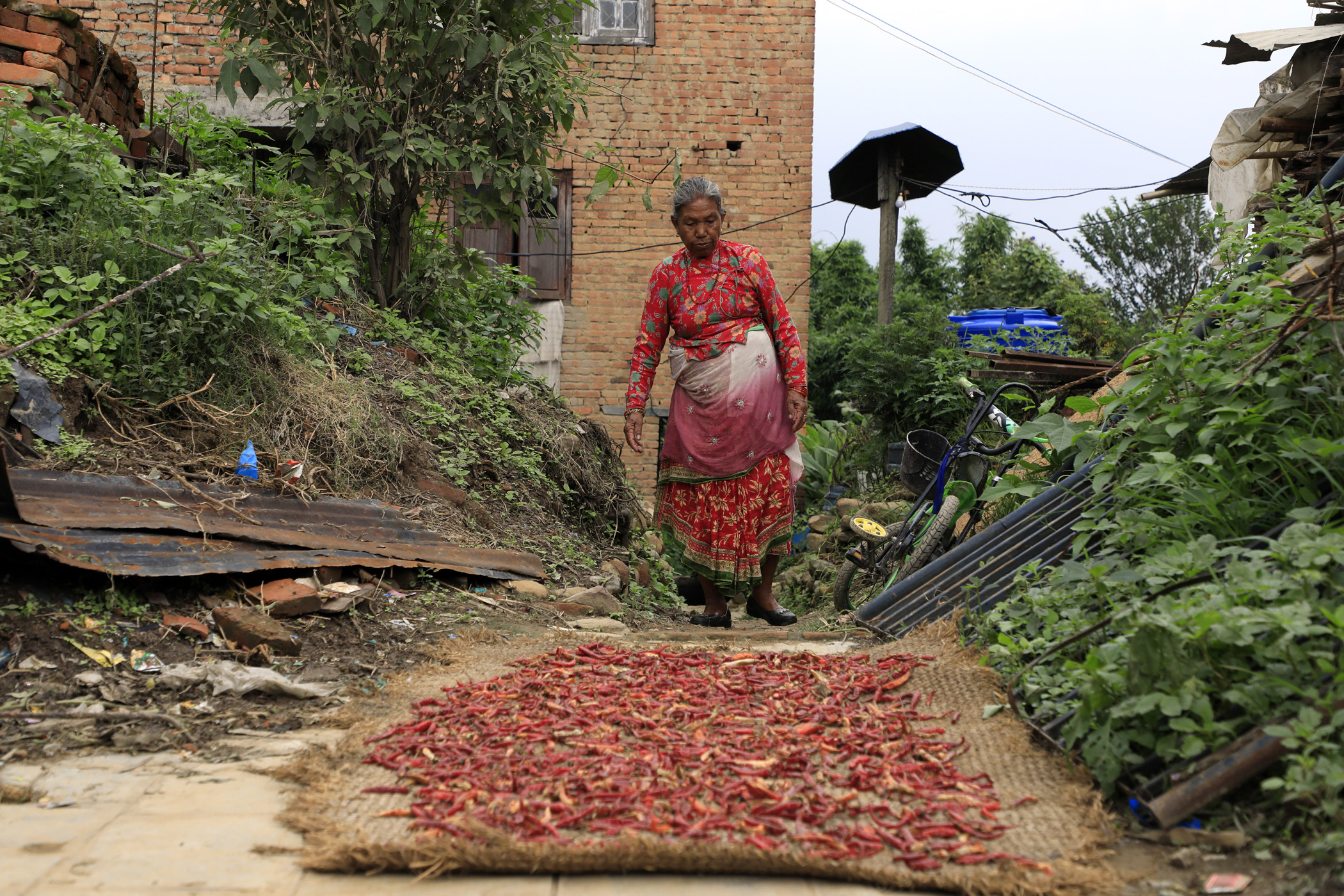 A woman dries red chillies in Sunakothi, Lalitpur. Hemanta Shrestha/TKP