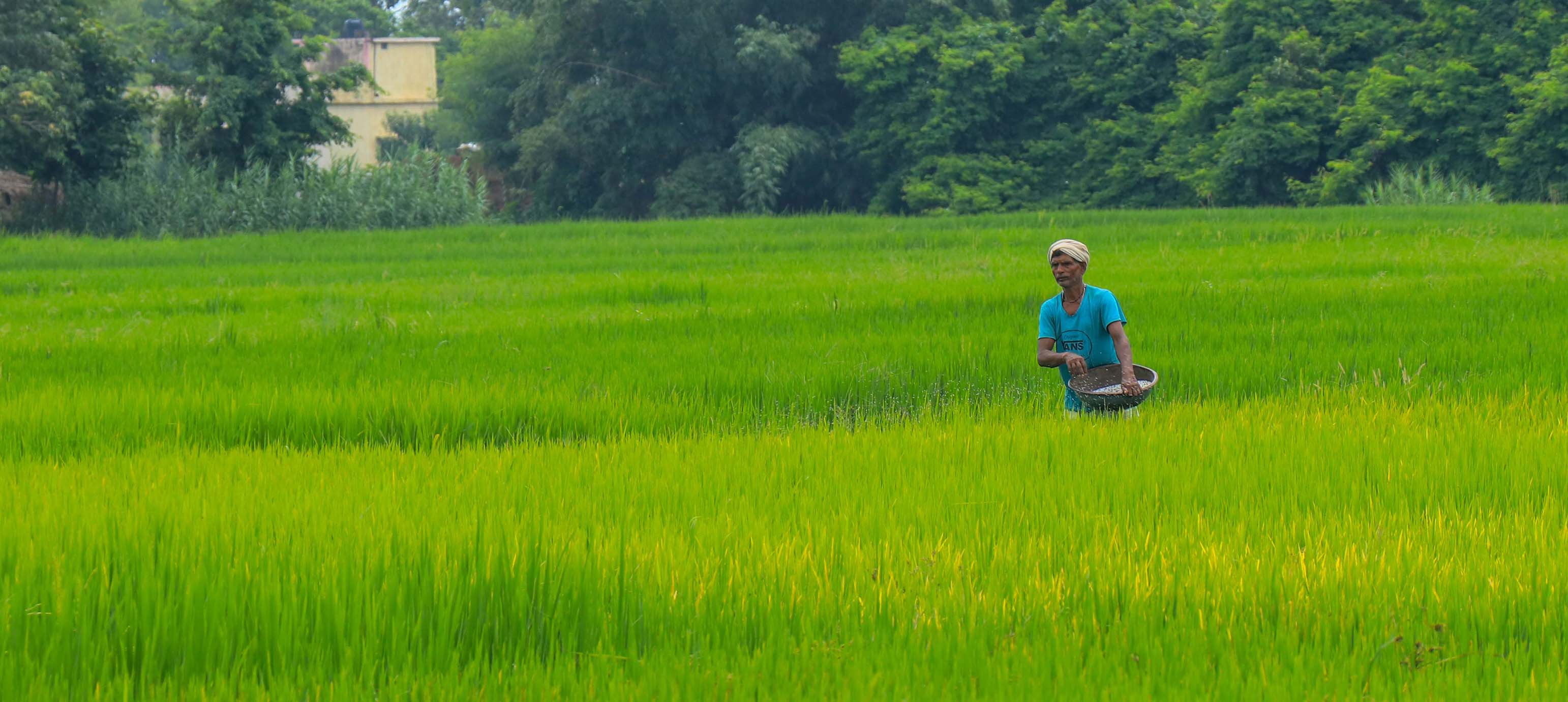 A farmer sprays urea at a paddy field in Kapilvastu ahead of the flowering stage. Manoj Paudel/TKP