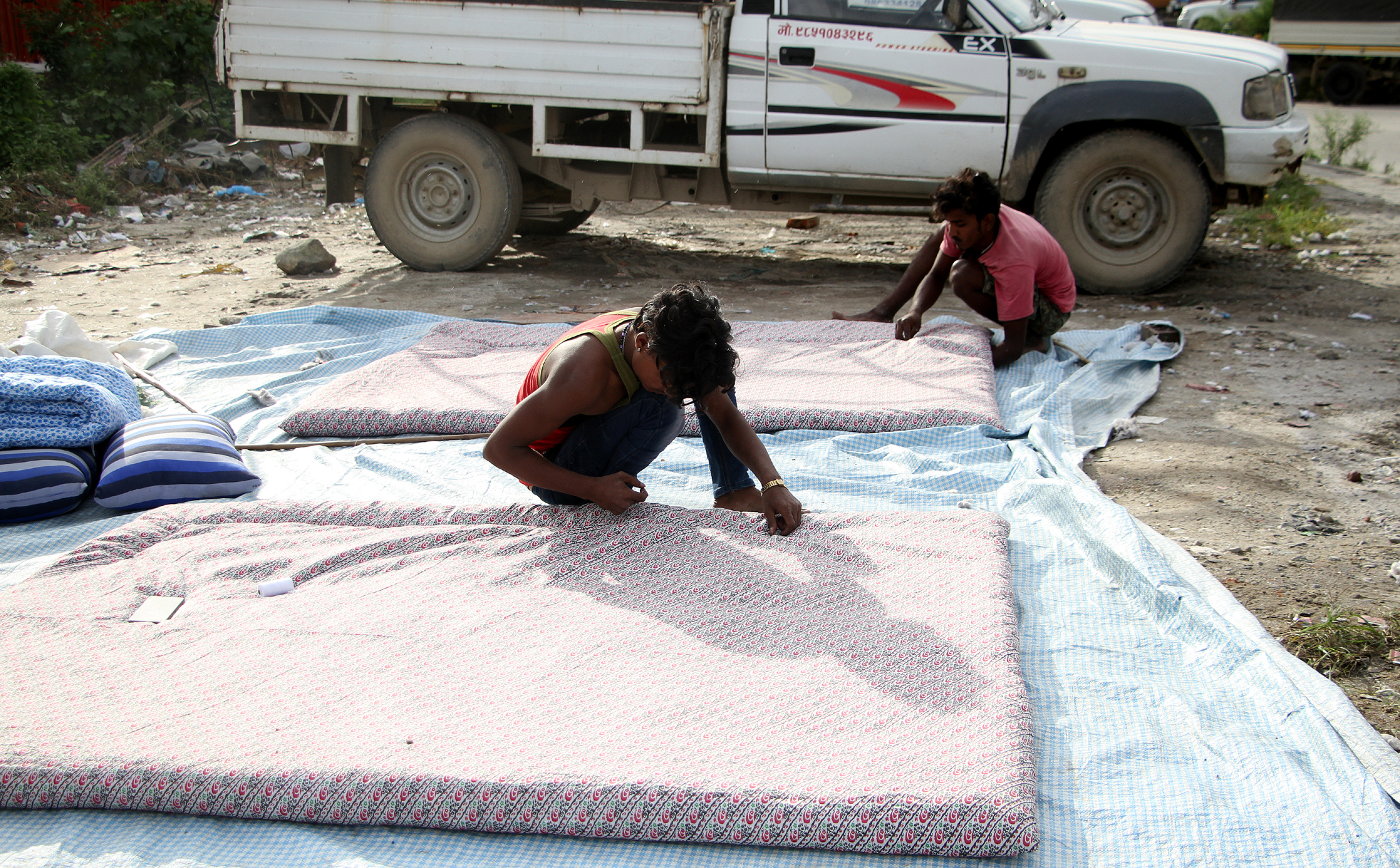 Workers make quilts at Chabahil in Kathmandu, on Saturday. The demand for quilts soars ahead of winter. Beeju Maharjan/TKP