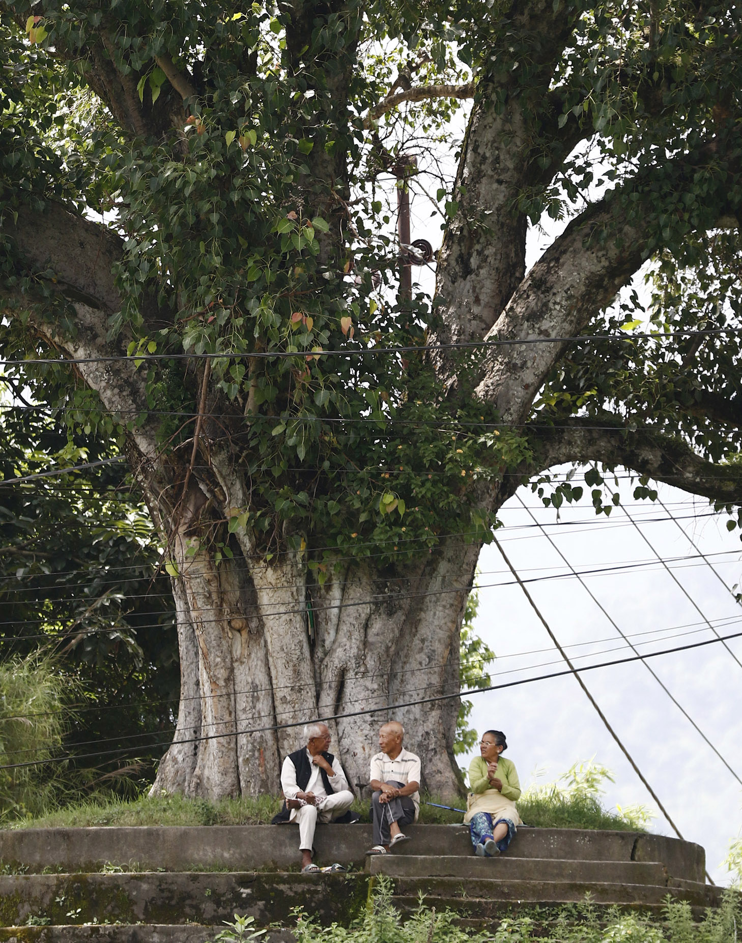 Elderly people while away their time under a Chautari, traditional resting place built under shade trees, at Chhampi village in Lalitpur. Keshav Thapa/TKP