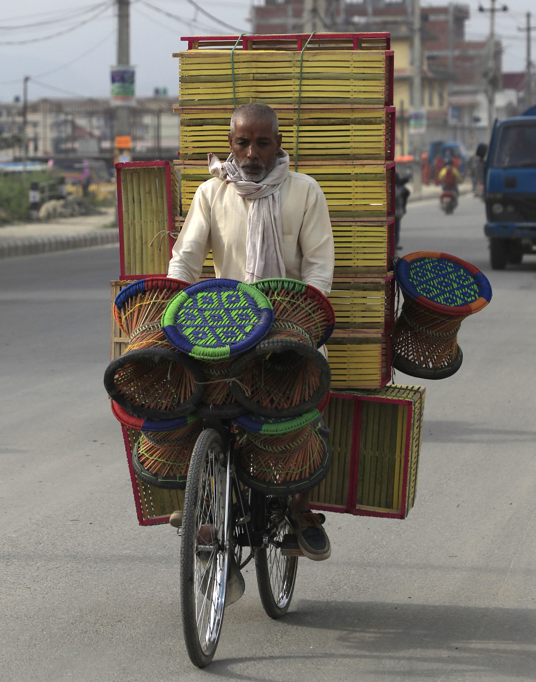 A vendor carries bamboo products for sale in Pepsicola, Kathmandu, on Thursday. Hemanta Shrestha/TKP