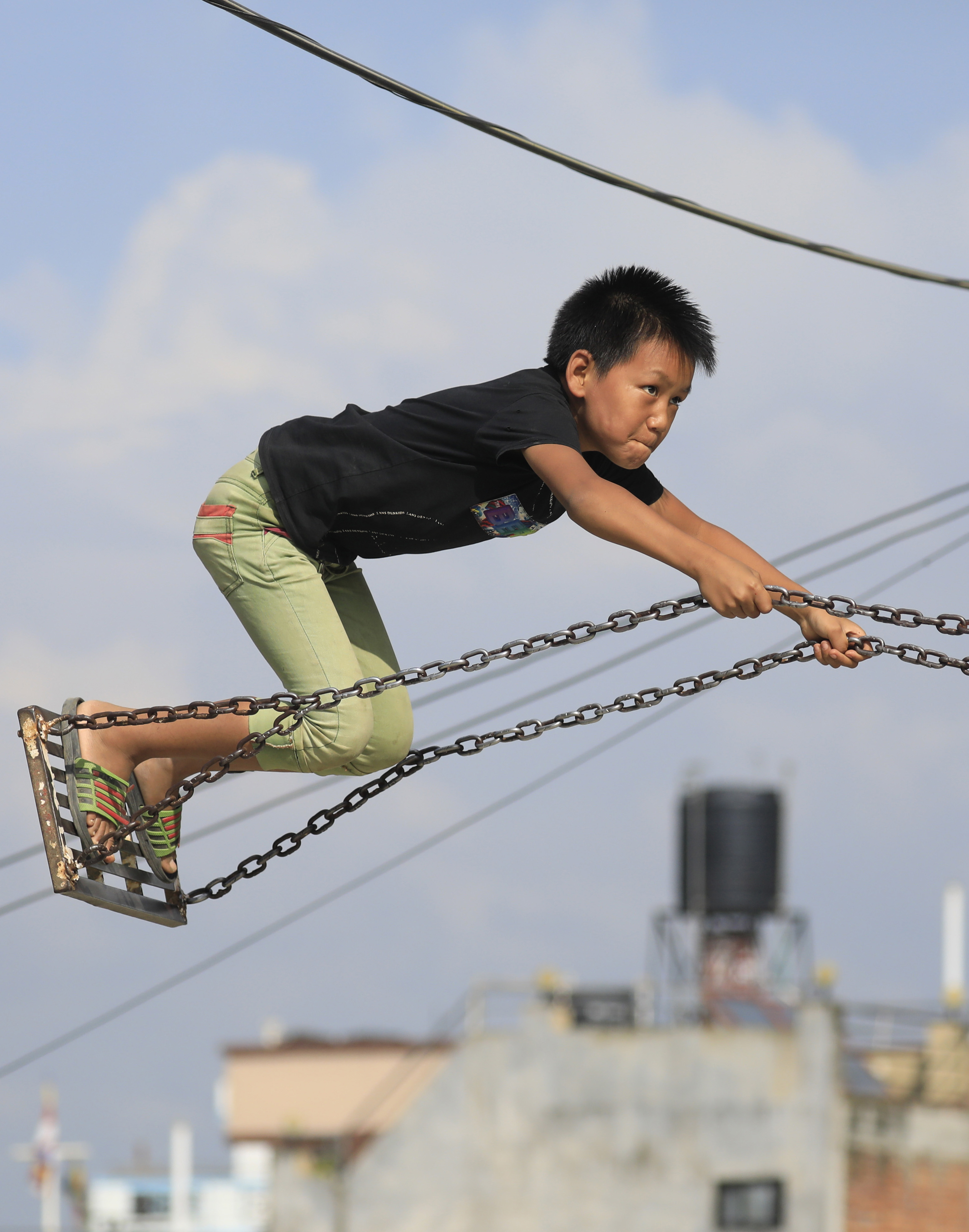 A young boy plays on a swing in a playground near Kumbeshwar Temple in Patan, Lalitpur. Hemanta Shrestha/TKP
