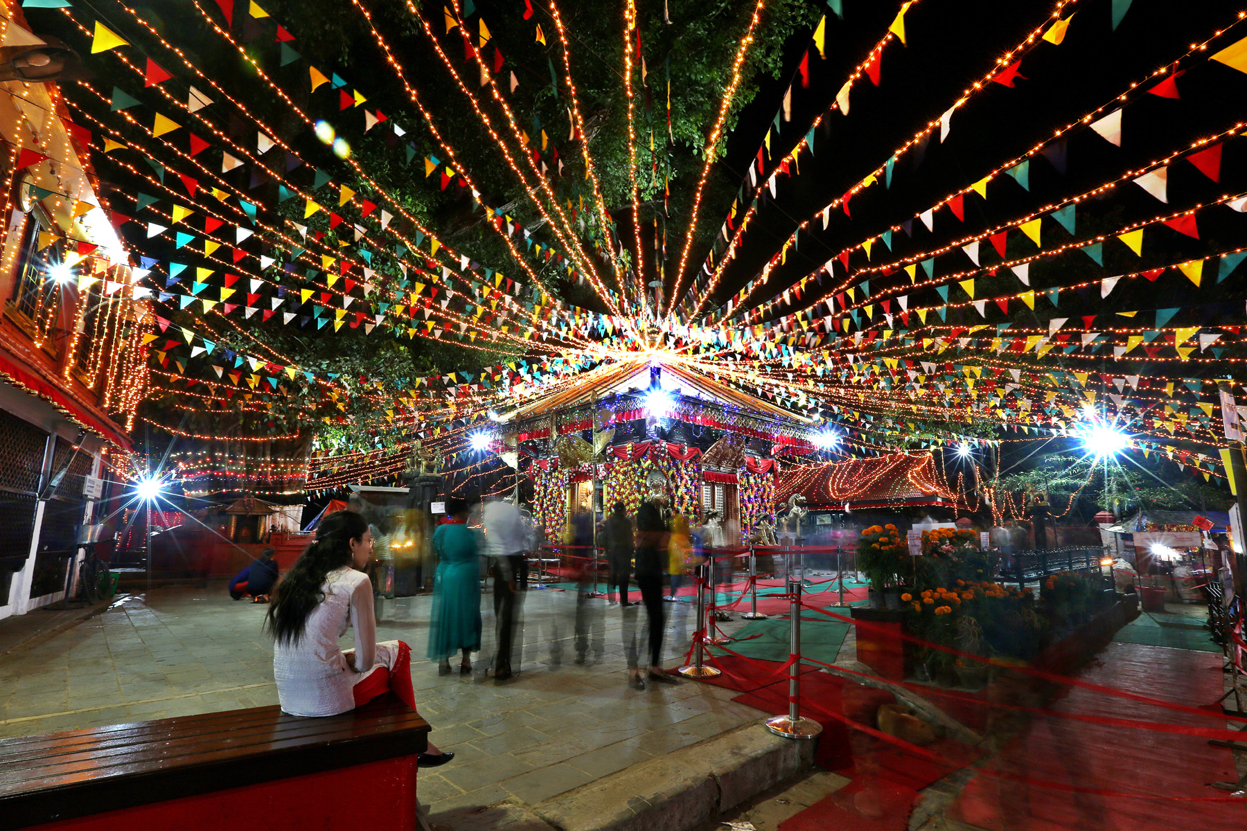 Maitidevi Temple is lit with colourful electric lights and decorations for the Dashain festival. Kiran Pandey/TKP