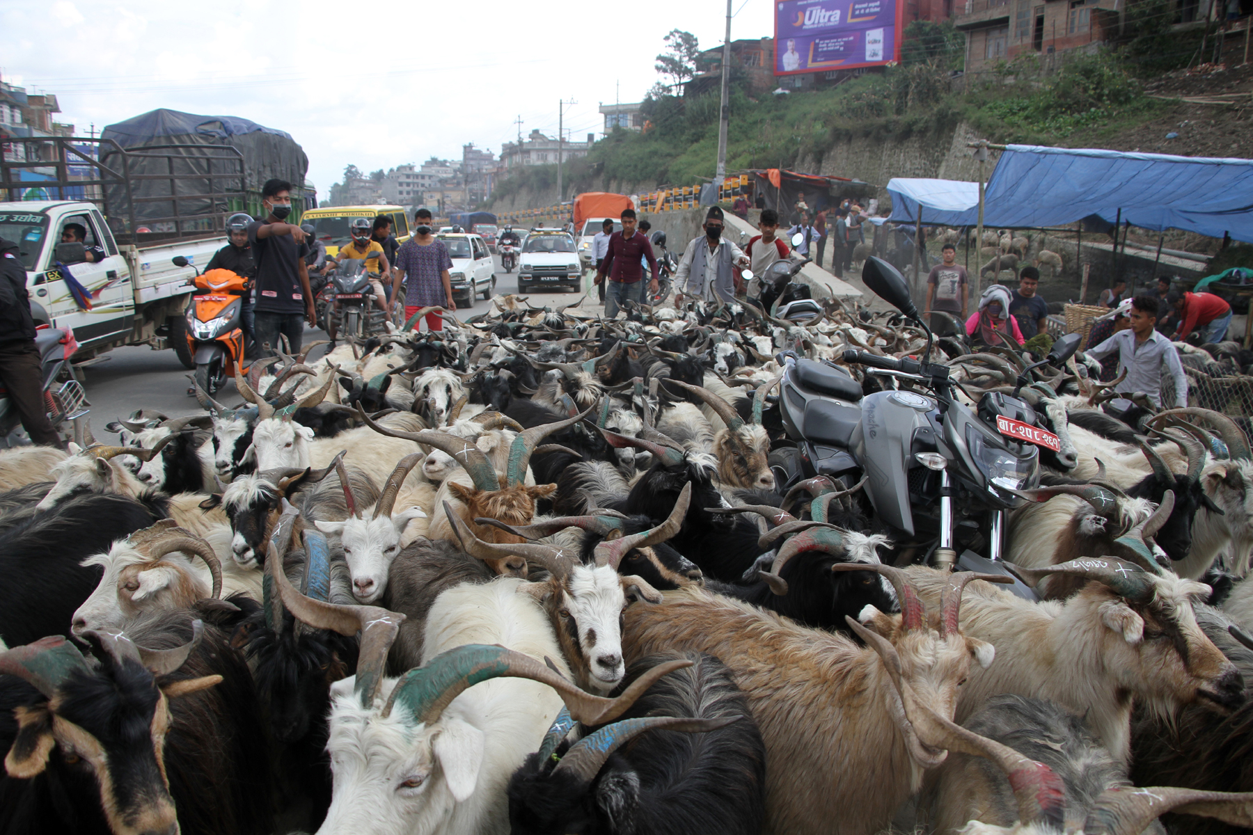 People buy goats at Khasibazar in Kalanki, Kathmandu, on Thursday. Beeju Maharjan/TKP