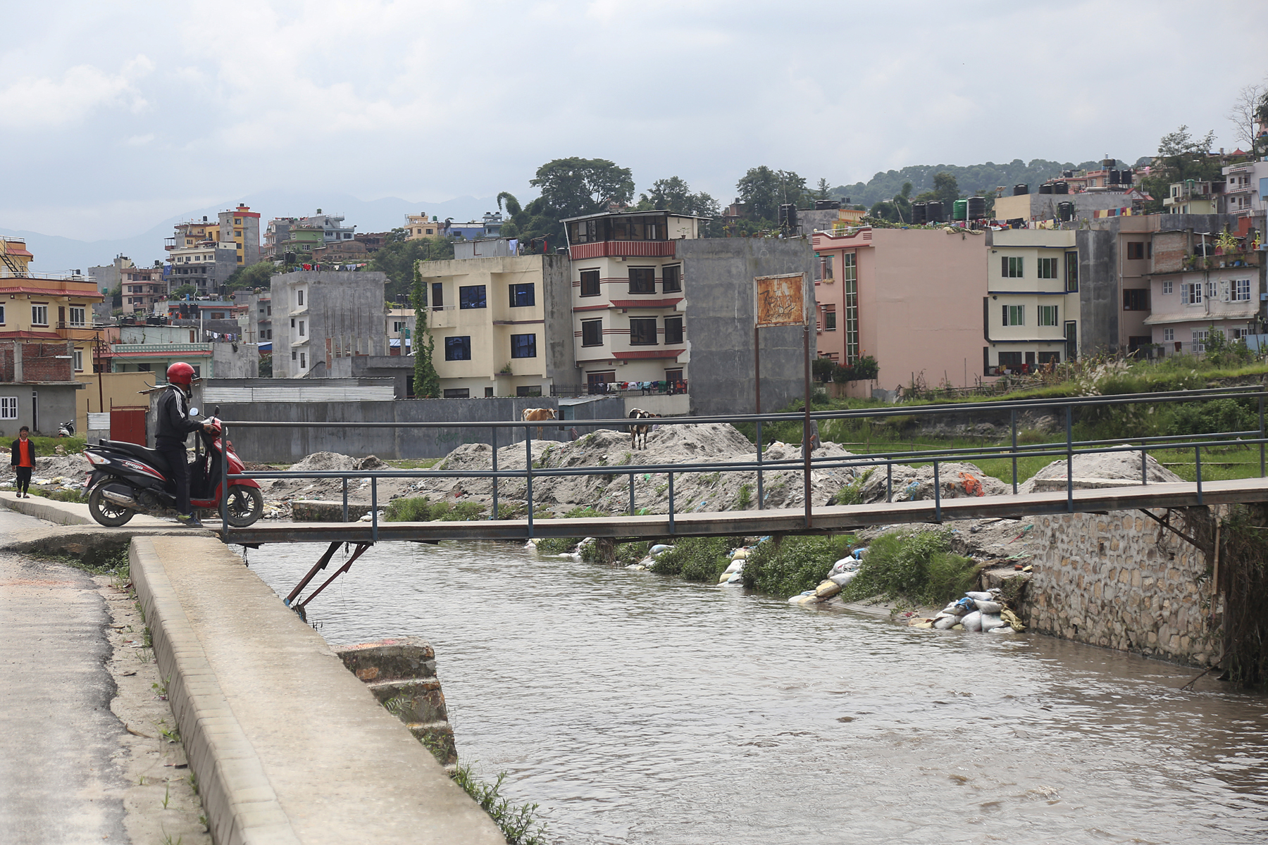 A man on his scooter is about to cross a bridge meant for pedestrians at Gongabu, Kathmandu, on Wednesday. Kabin Adhikari/TKP