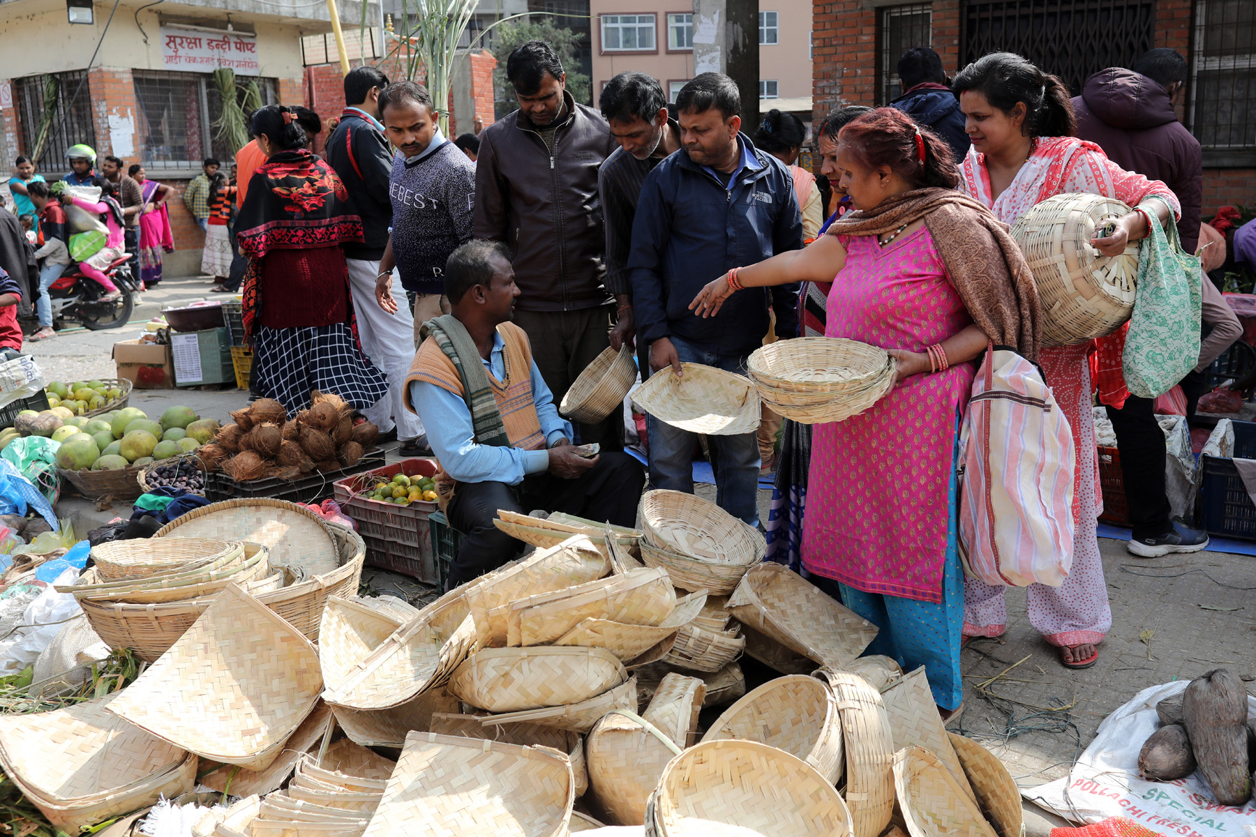 Devotees shop for Chhath at Kalimati fruits and vegetables market in Kathmandu on Friday. Elite Joshi/TKP