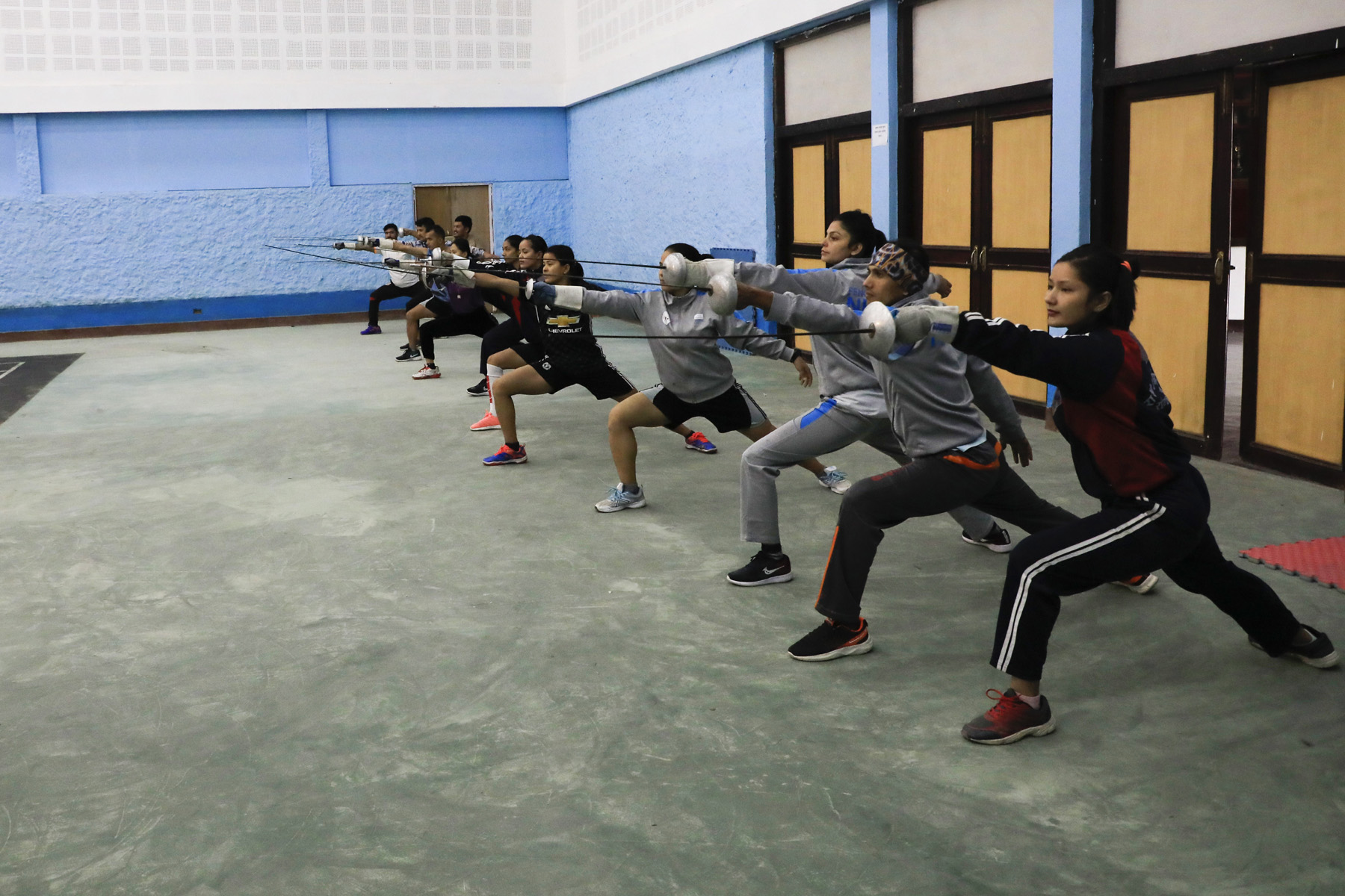 Nepali national fencing team during a training session at the Nepal Police Academy in Maharajgunj, Kathmandu, on Saturday. Hemanta Shrestha/TKP