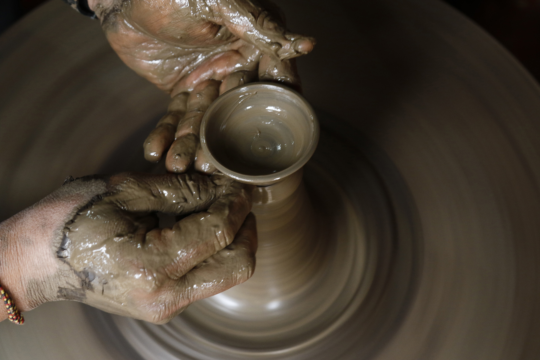 A potter crafts earthen lamps called ‘diyo’ at Pottery Square in Bhaktapur. Clay oil lamps are in high demand during Tihar, the festival of lights. Keshav Thapa/TKP