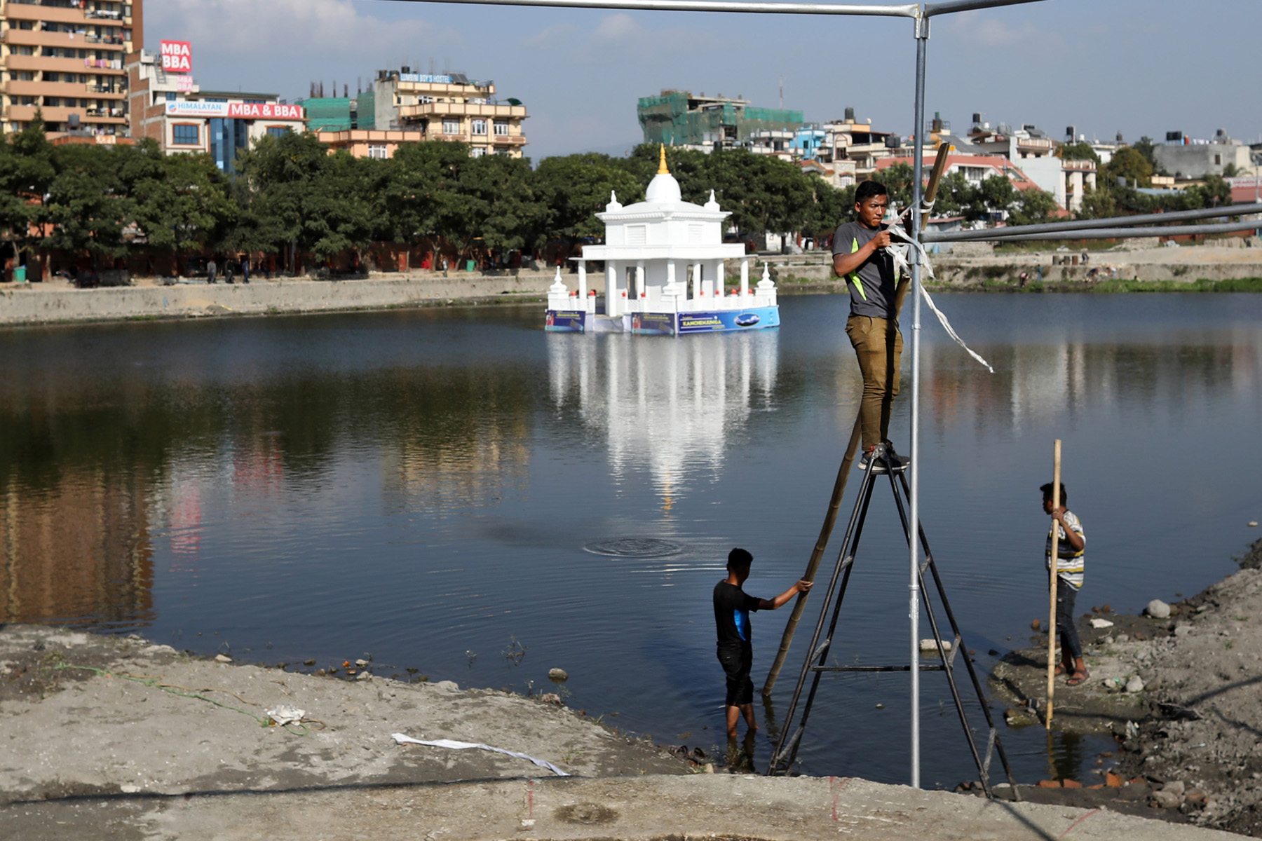 A floating temple installed in the middle of Kamalpokhari for the Chhath festival. Elite Jioshi/TKP