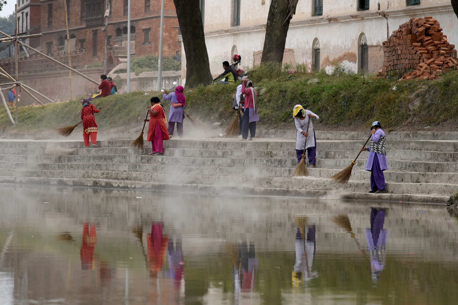 Workers clean the bank of Bagmati River in Pashupati, Kathmandu, on the eve of Chhath festival. Angad Dhakal /TKP