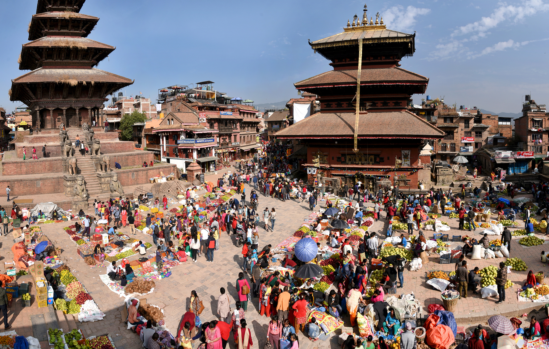 People buy fruits and vegetables from street vendors at Taumadhi Square in Bhaktapur for the festival of Tihar. Angad Dhakal/TKP