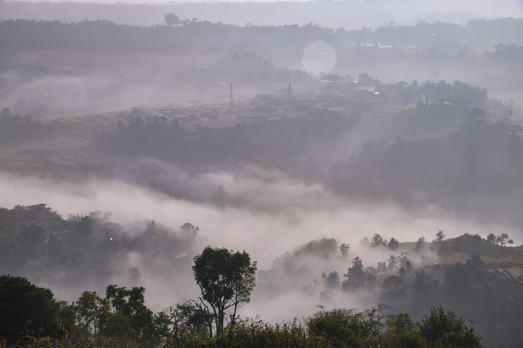 A foggy winter morning seen from Chalnakhel in Kathmandu on Friday. Deepak KC/TKP