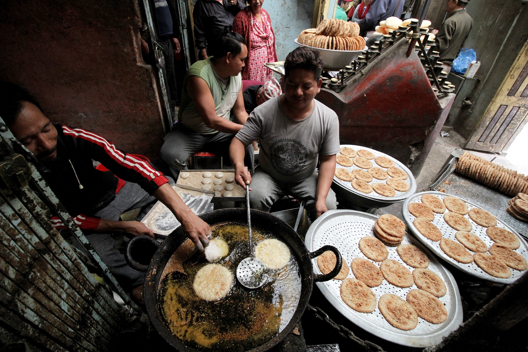 Vendors prepare sweets for the Tihar festival in Tangal, Lalitpur, on Saturday. Beeju Maharjan/TKP