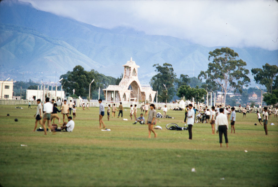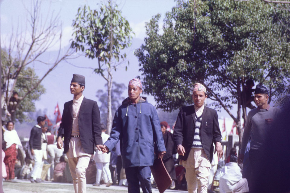 Government workers leave Tundikhel after the completion of Democracy Day ceremonies in 1969. Nepal Photo History Project/Peace Corp