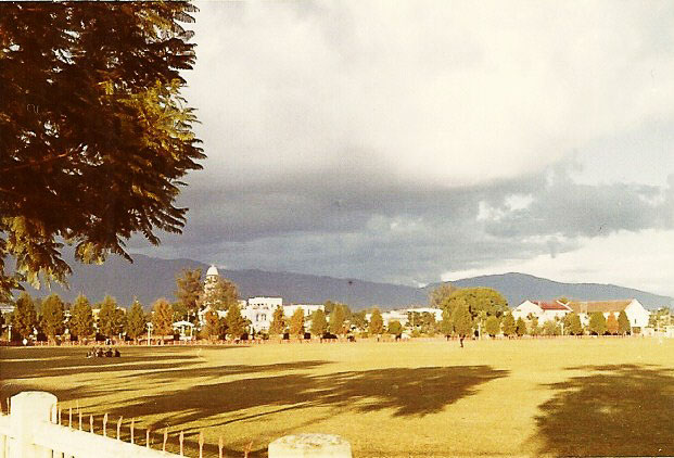 Tundikhel with the Tri-Chandra College clock tower (Ghantaghar) in the background in 1971. Nepal Photo History Project/Peace Corp