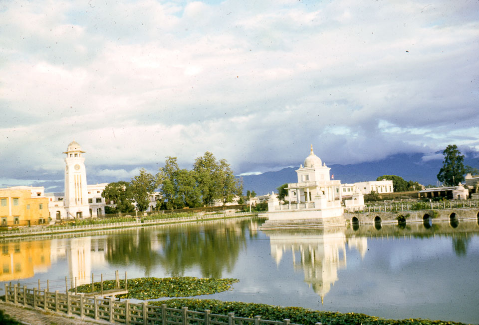 Rani Pokhari and Swayambunath stupa on the hill in the distance at the upper left in 1963. Nepal Photo History Project/Peace Corp