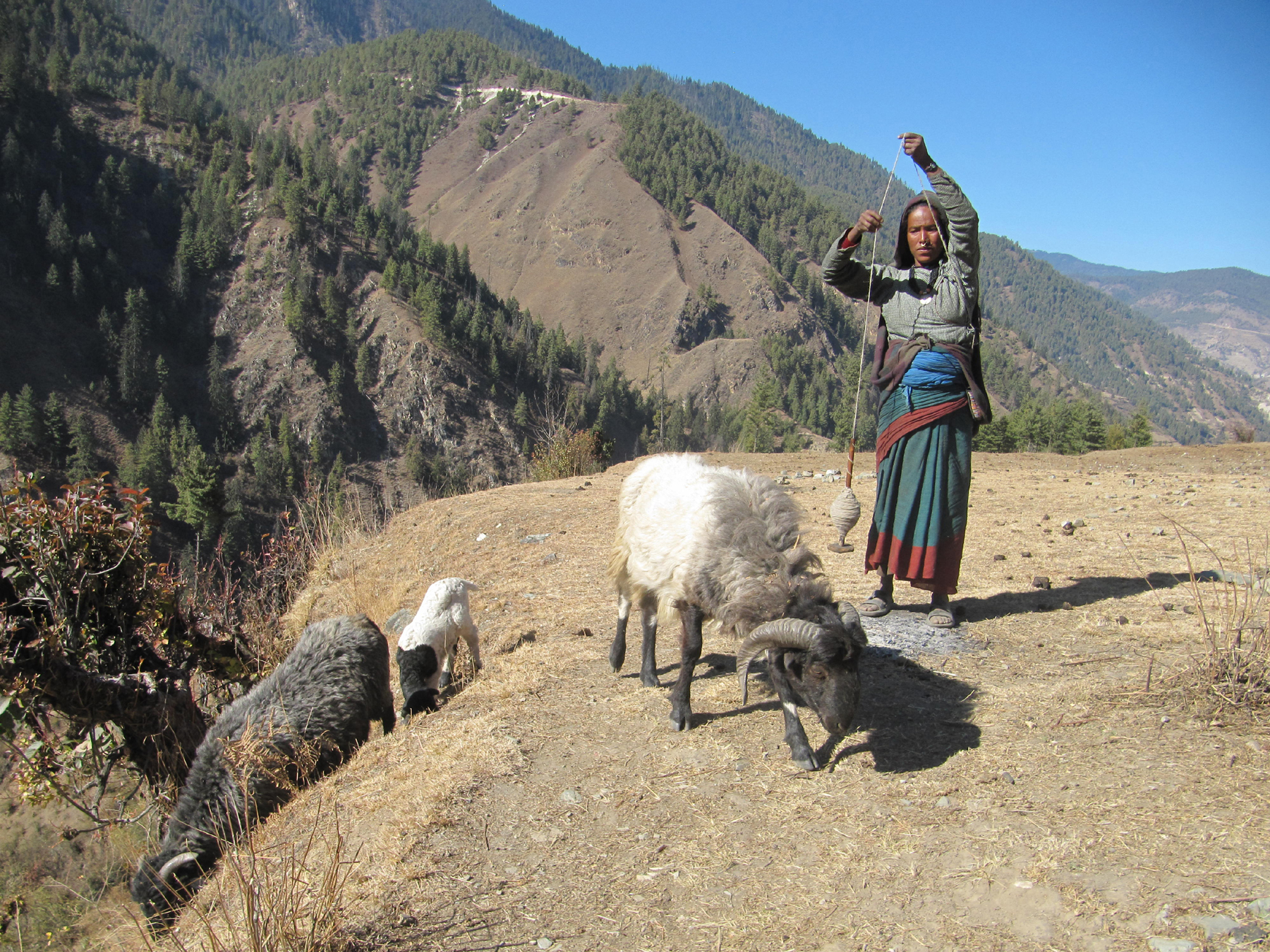A woman works on her yarn while herding sheep in Mundu village of Chhayanath Rara Municipality, Mugu. Raj Bahadur Shahi/TKP