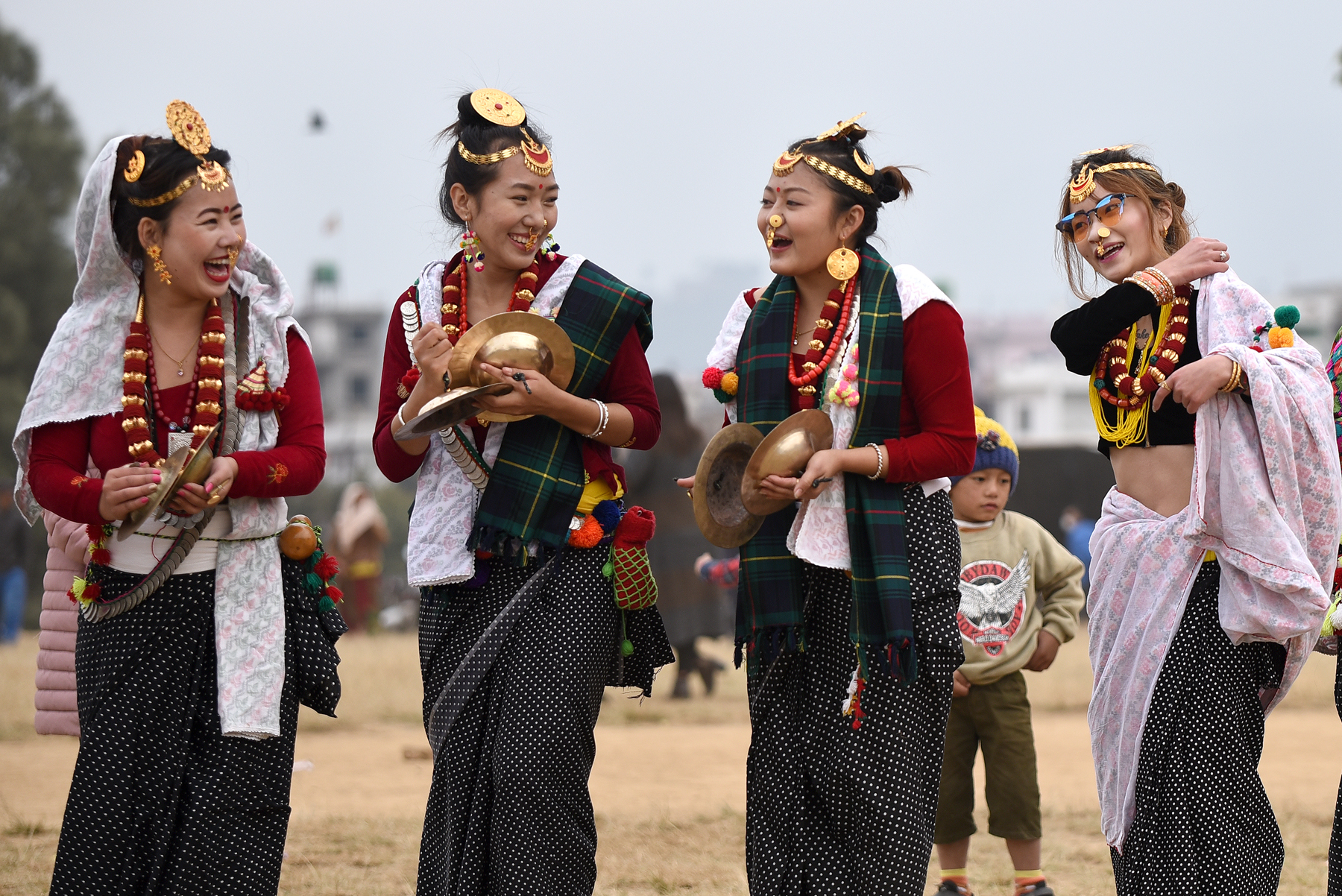 Women from the Kirat community join Udhauli celebrations in Sunakothi, Lalitpur on Thursday. Angad Dhakal/TKP