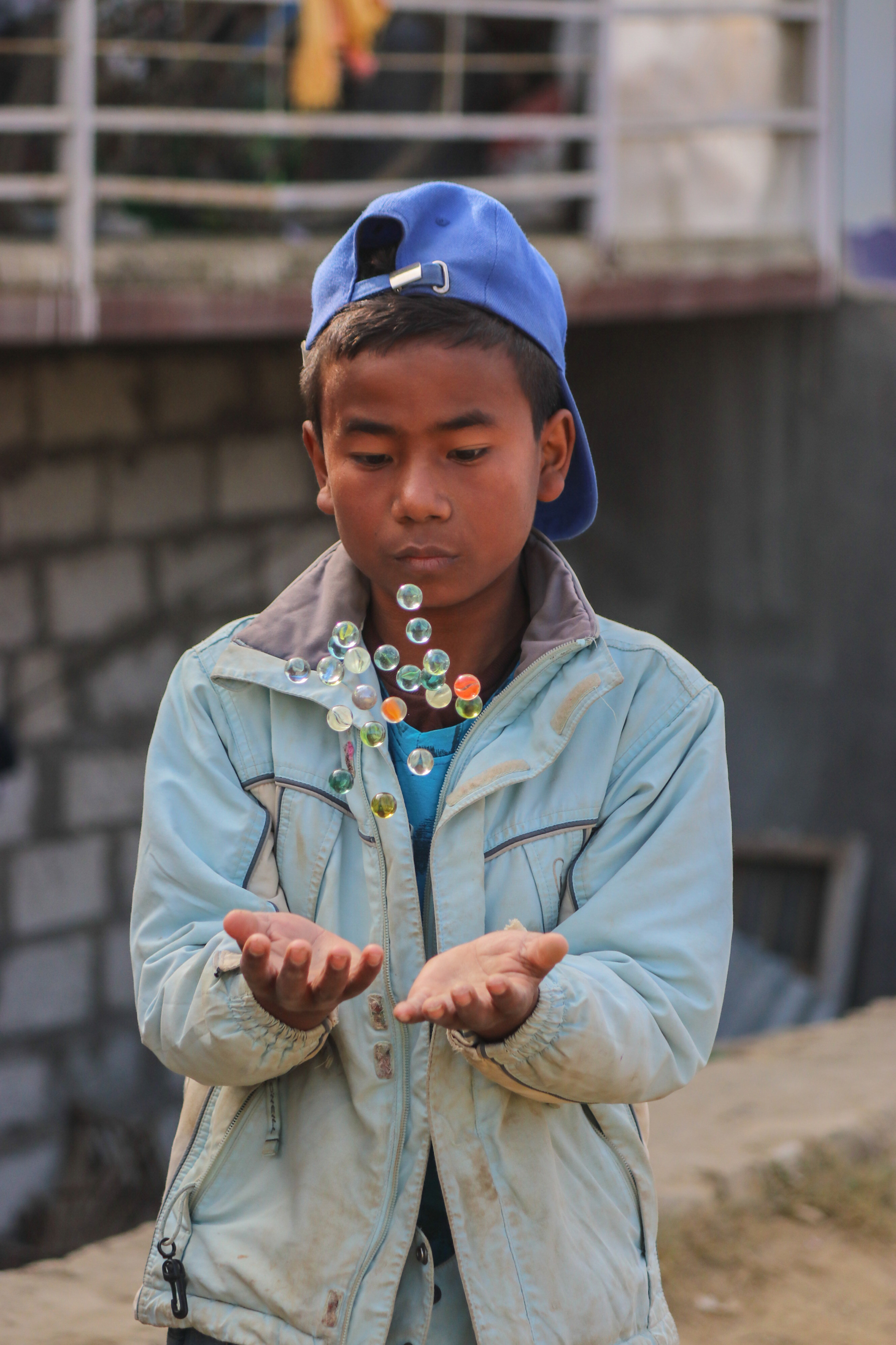 A child juggles a bunch of marbles in Thimi, Bhaktapur. Pratham Bista/TKP