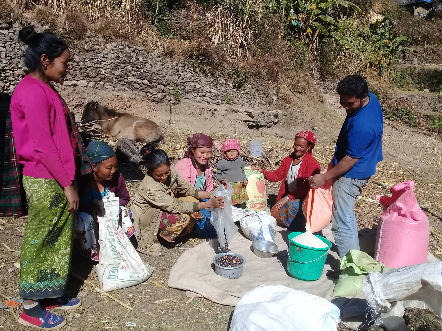 Villagers of Bhumey Rural Municipality in Rukum (East) barter beans for rice. Hari Gautam/TKP
