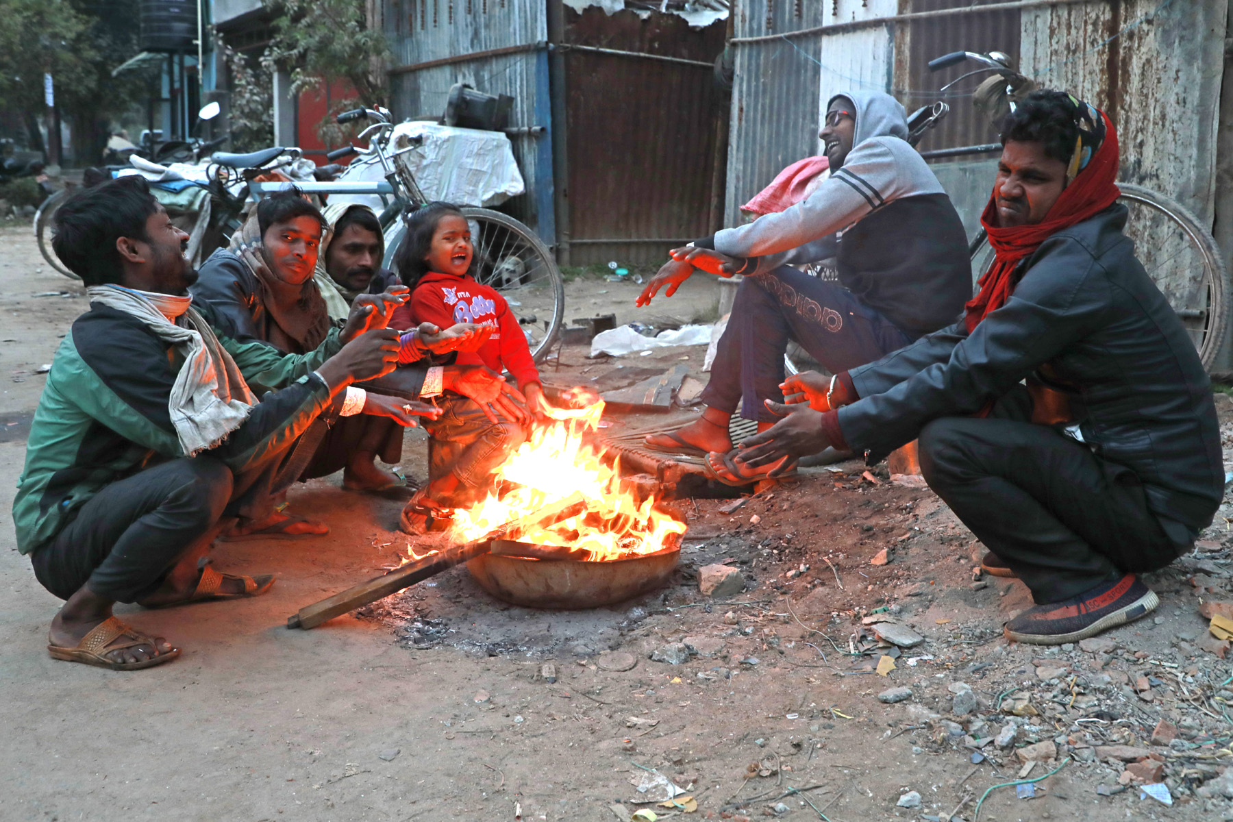People huddle around a fire in Thapathali, Kathmandu, as the mercury levels dipped across the country on Thursday. Hemanta Shrestha/TKP