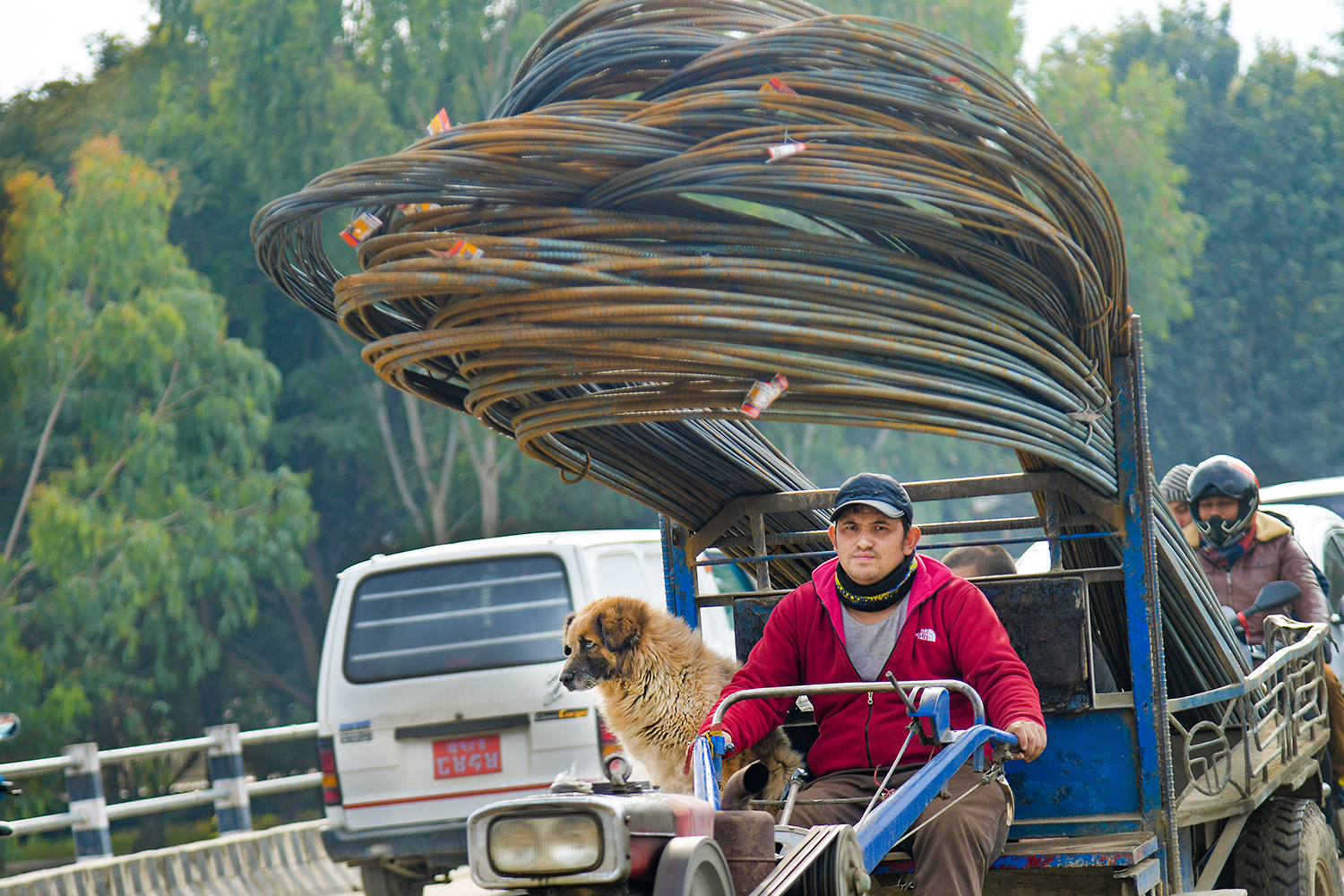 A tractor driver is accompanied by his dog as he transports steel rods in Kathmandu. Deepak KC/TKP