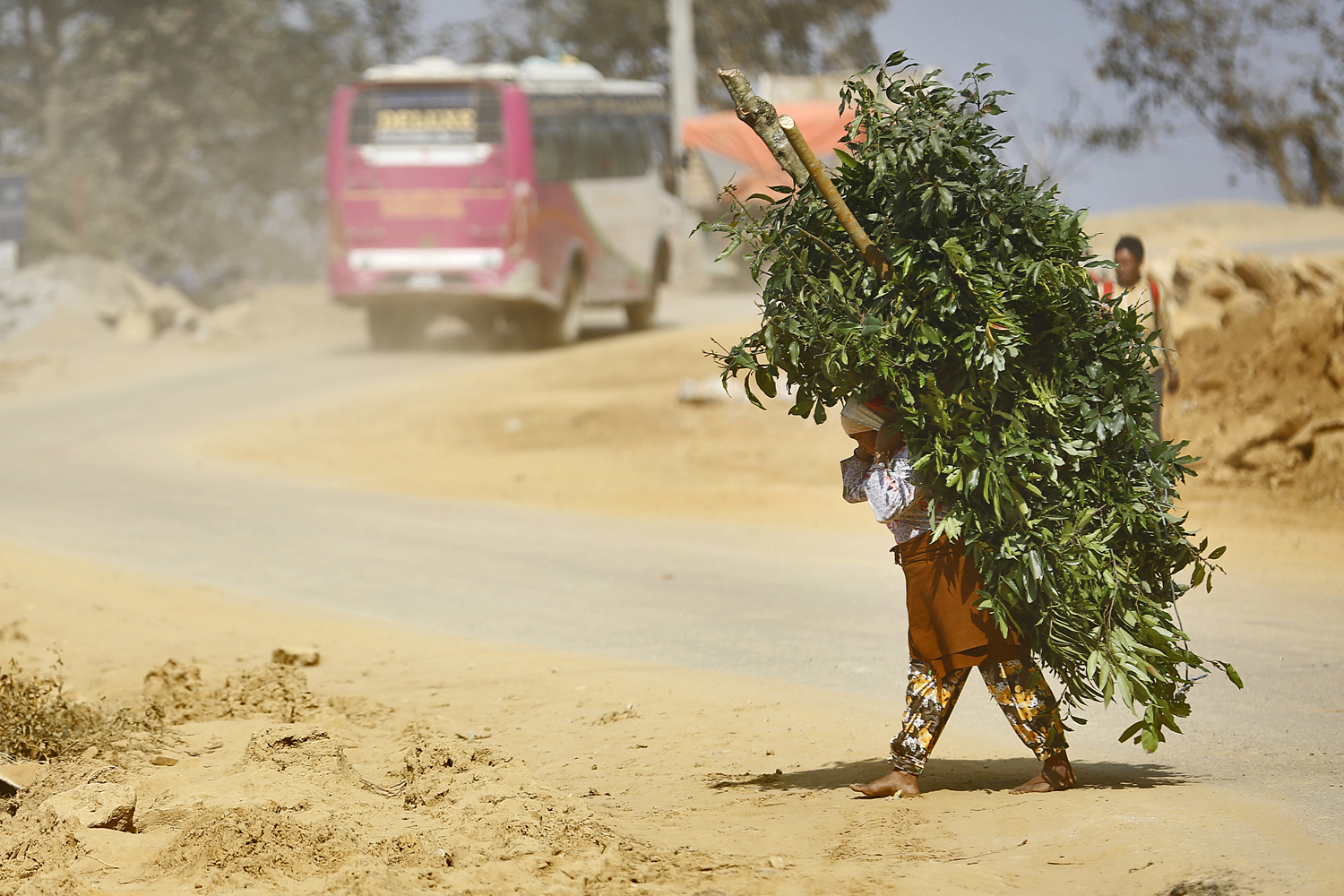 A woman carries a load of leaves to feed her cattle in Tika Bhairav, Lalitpur. Sanjog Manandhar/TKP
