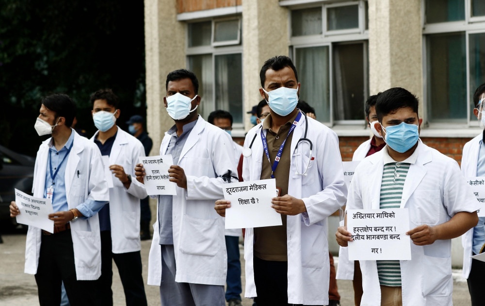 Doctors at Maharajgunj-based Teaching Hospital stage protest in solidarity with Dr KC