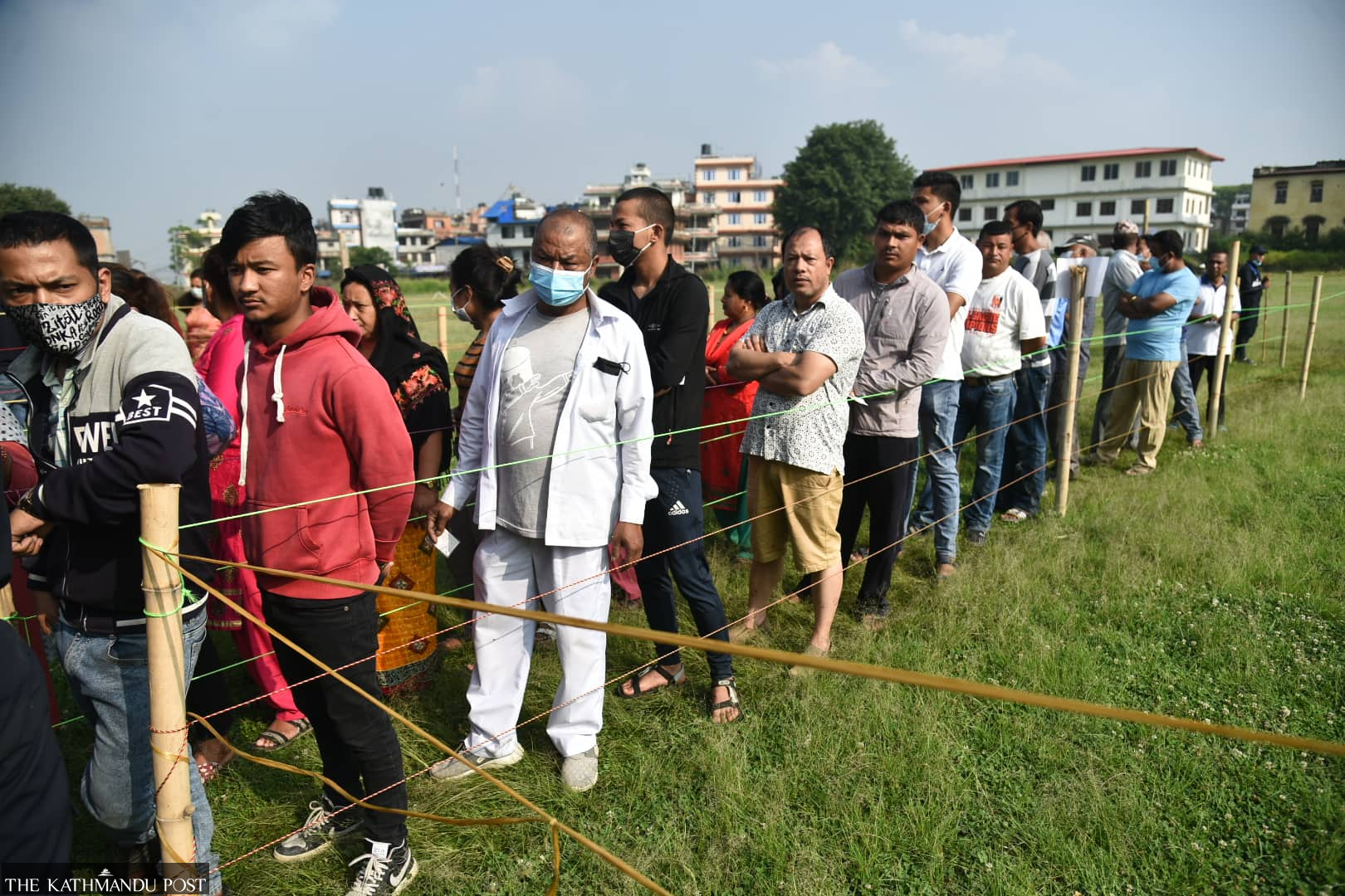 People wait in line to cast their votes in Rautahat. Shiva Puri/TKP