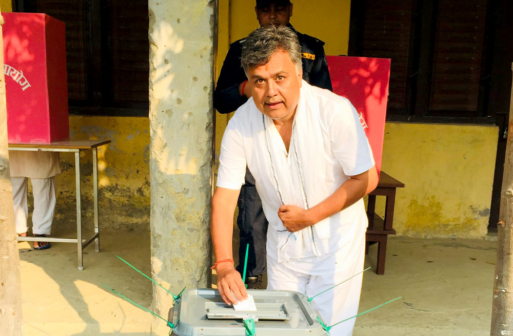 Birgunj Metropolitan City mayor candidate Girish Giri casts his vote from a local polling centre in Birgunj on Friday. Giri is the mayoral candidate from Rastriya Prajatantra Party.