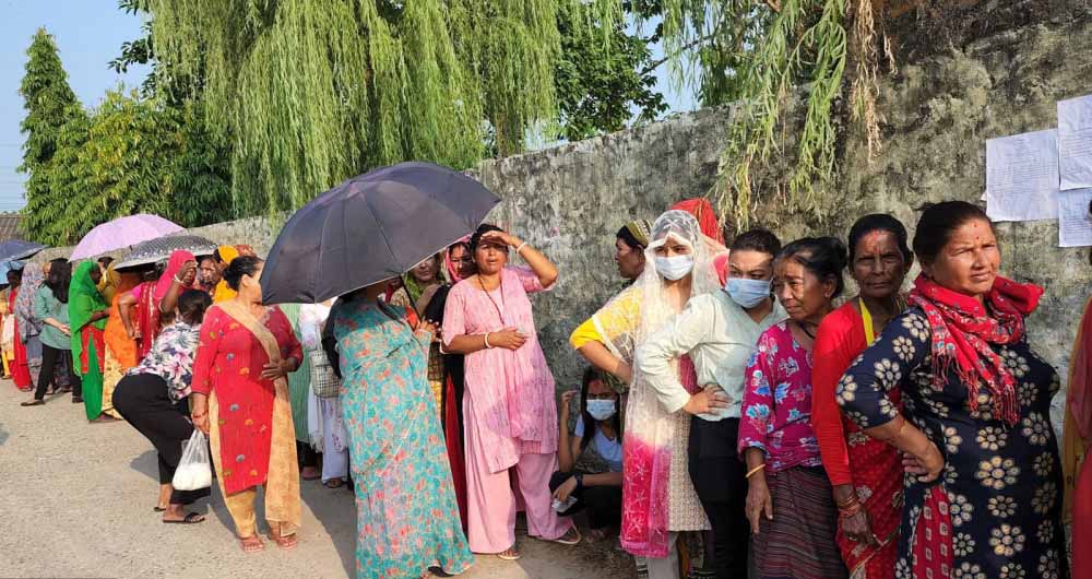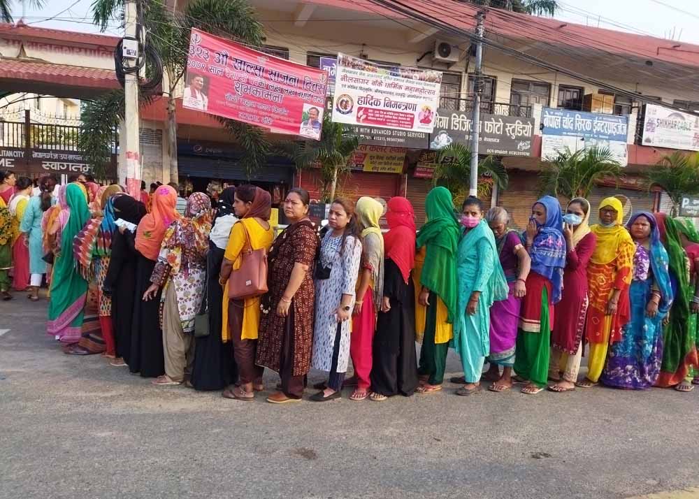 People queue up to cast their votes at Nepalgunj Sub-Metropolitan City on Friday. Rupa Gahatraj/TKP