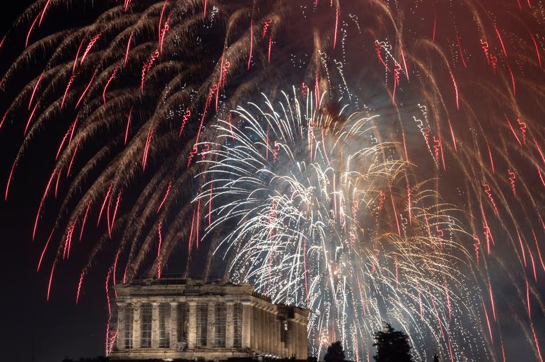 Fireworks explode over the ancient Parthenon temple atop the Acropolis hill during New Year's Day celebrations, in Athens, Greece. Reuters